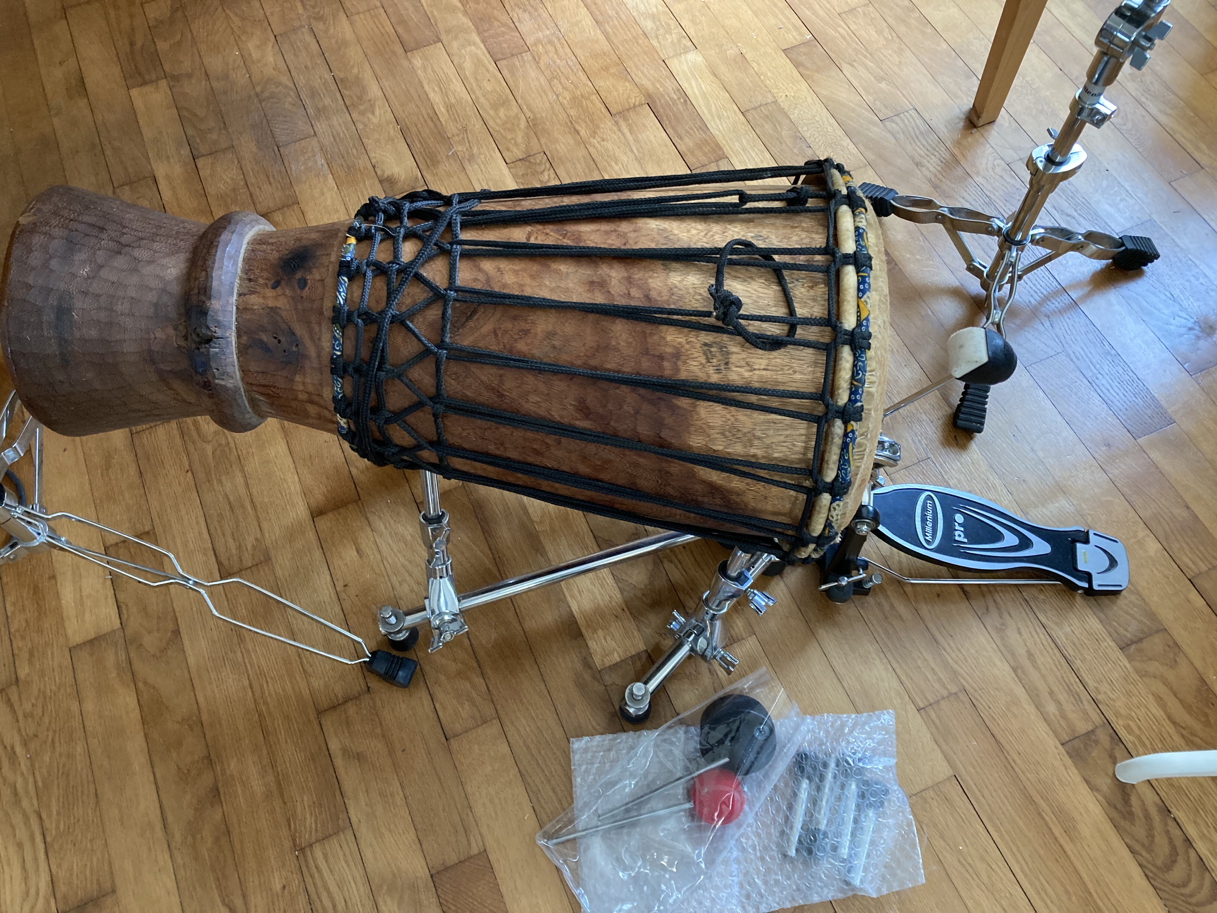 Je vends ce DW Drums 9909 Bass Drum Lifter comme neuf ainsi que :- une batte pour cajon Schlagwerk (embout façon mini balle de tennis)