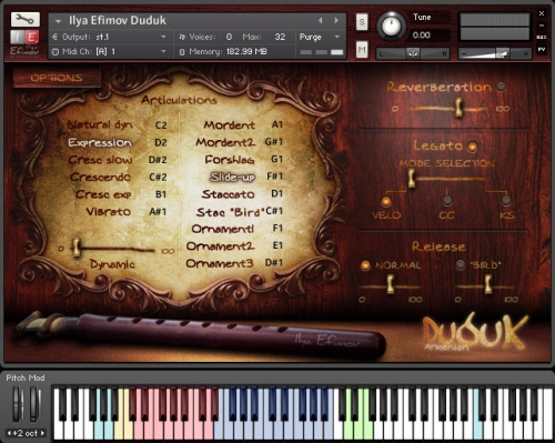 Ilya Efimov a donc échantillonné cet instrument dans une banque de 656MB compressée, avec des samples stéréo en 24-bit / 44.1kHz.