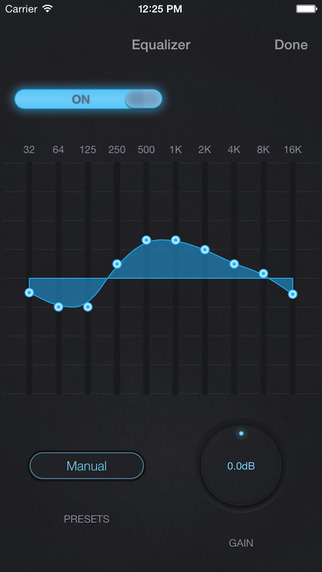 L’appli inclut également un égaliseur graphique (ne traite pas les fichiers DSD), une fonction de suréchantillonnage et vous pourrez transférer les fichiers HD via AirDrop, iCloud Drive, Dropbox, Google Drive, OneDrive ou iTunes depuis votre ordinateur vers votre iPhone. Notez par contre que les fichiers protégés par DRM ne seront pas lus.