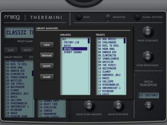 L’appli Theremini Advanced Software Editor de Moog ne génère aucun son, mais en connectant en USB à l’instrument, vous pourrez créer de nouveaux presets, éditer les presets existants et même générer de nouveaux sons en temps réel pendant que vous jouez sur le Theremini. L’appli vous donne également la possibilité d’éditer les paramètres globaux du Theremini.