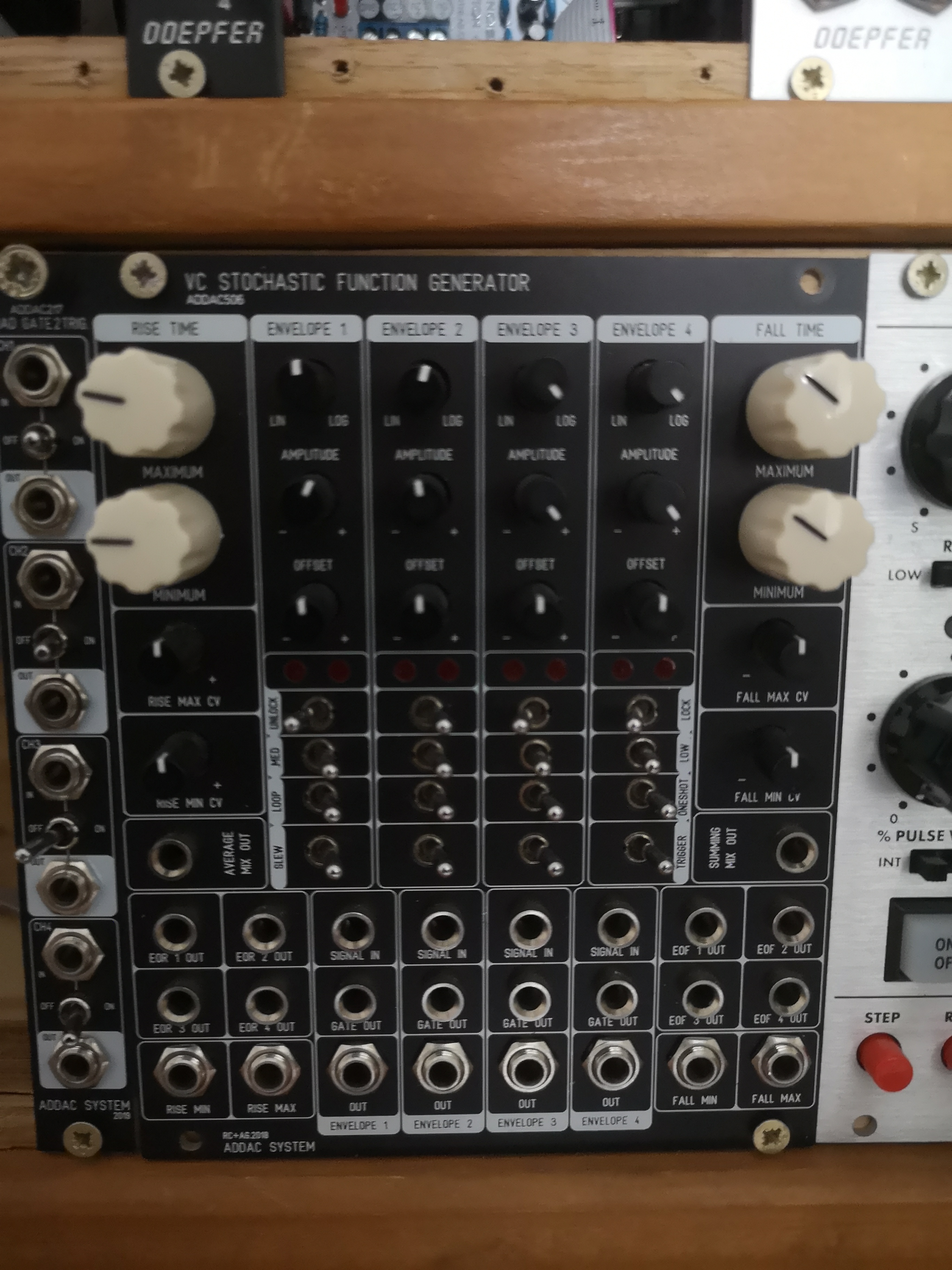 Le 506 est un quadruple générateur de fonction Rise and Fall avec de l'aléatoire possible sur les temps de montée et descente.Pour plus d'info voir la vidéo de monotrail :