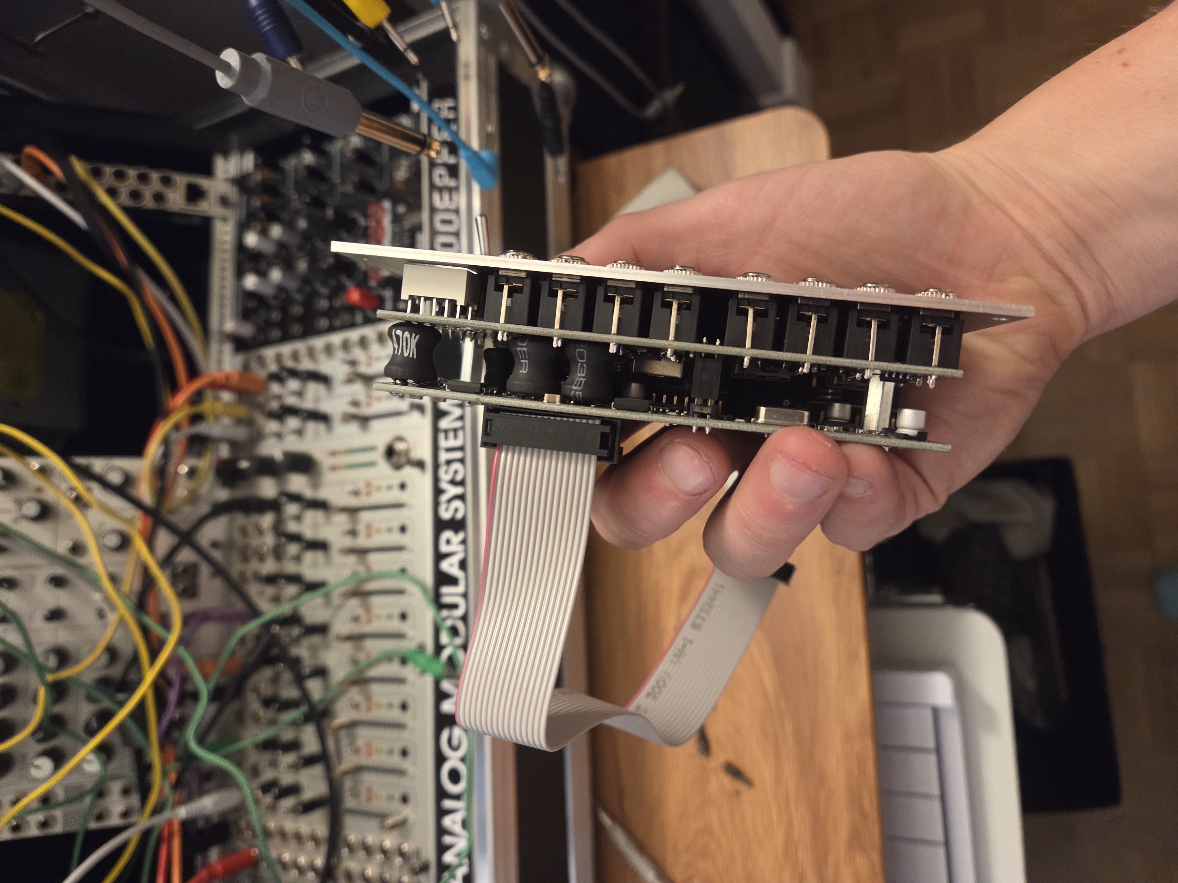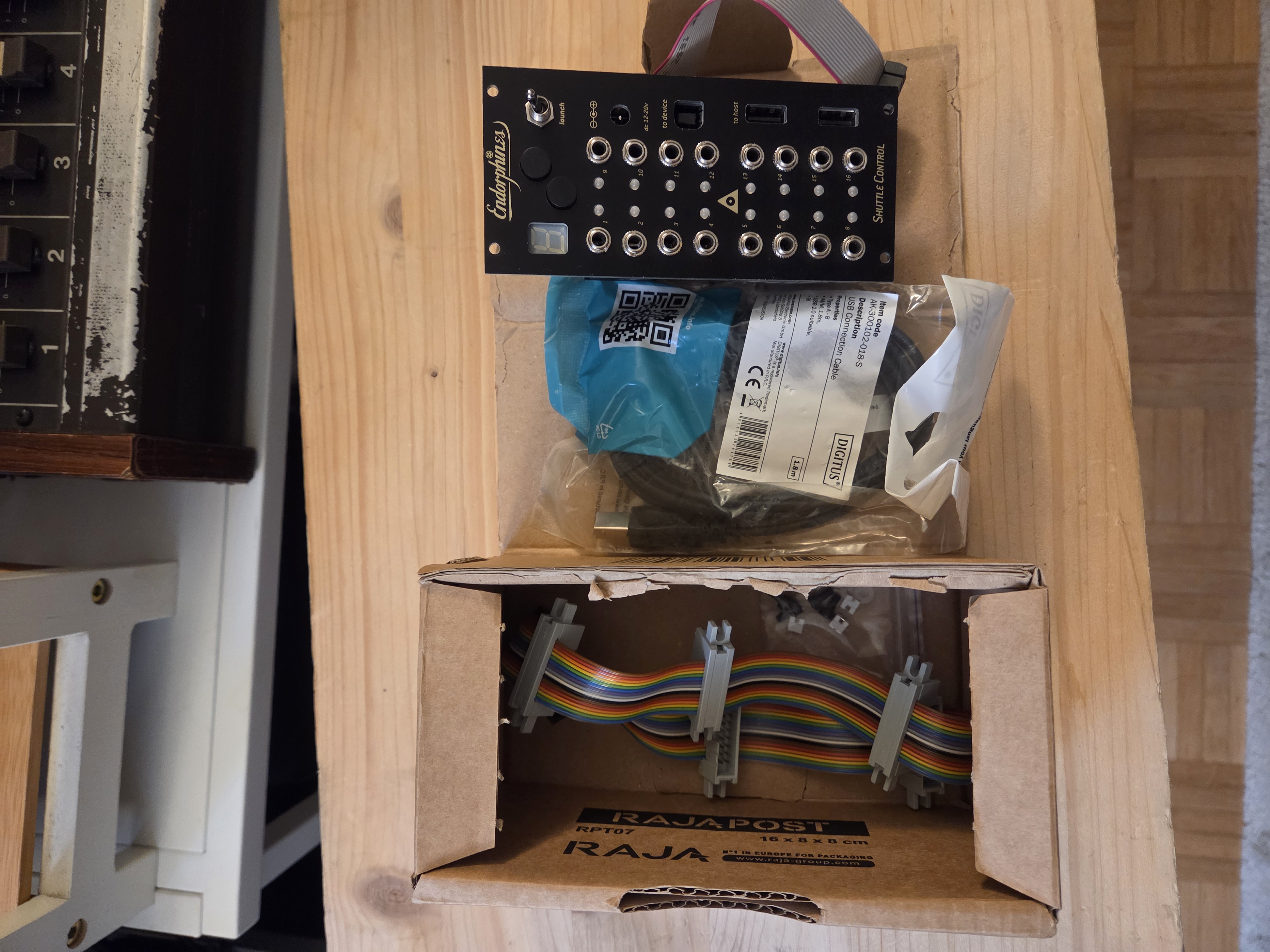 Le module est livré avec sa boite d'origine, un câble usb, et sa nappe d'origine. Attention cette dernière est défectueuse donc je fournis avec un flying busboard de TipTop audio.