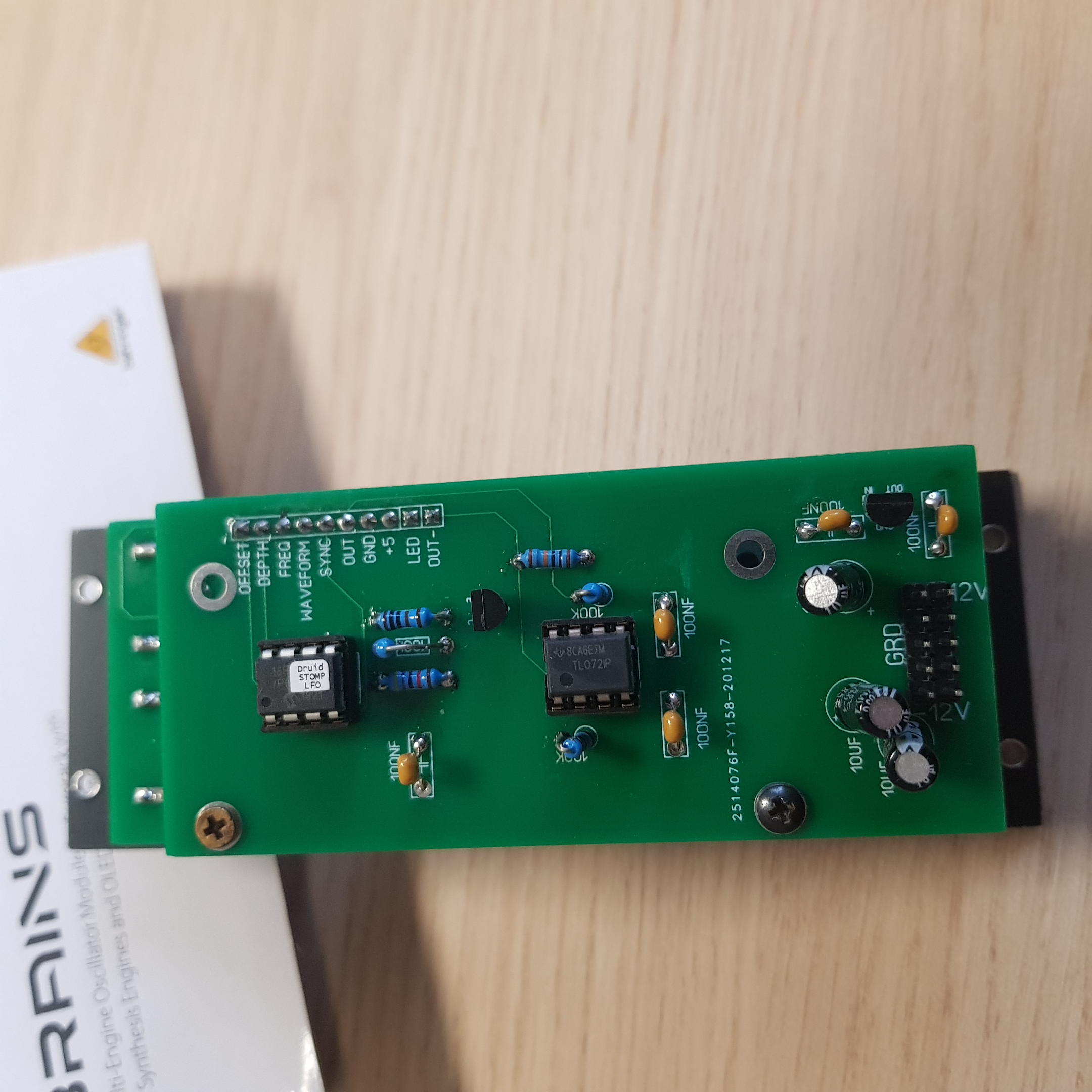 Je mets en vente ce module construit autour de la puce Stomp lfo de chez Electric Druid. Multiple formes d'ondes, synchronisable avec une clock ou en tap tempo, avec un bouton depth qui permet d'économiser un vca...