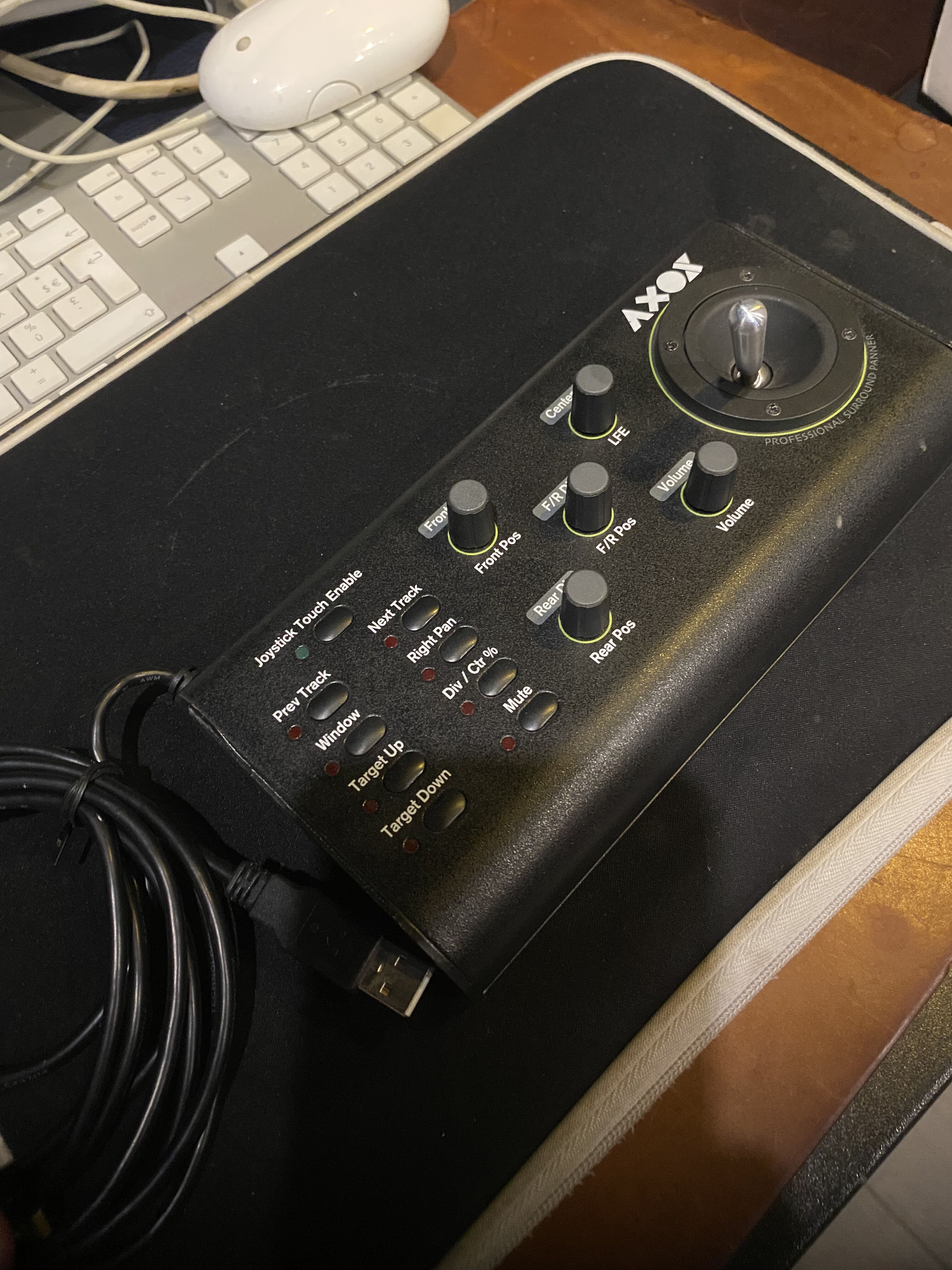 A vendre cause cessation activité.Le AXOS Surround Panner de JLCooper est un contrôleur professionnel pour AVID Pro Tools et Apple Logic Pro X, doté d'un joystick tactile, de cinq encodeurs rotatifs et de neuf boutons tactiles pour une maîtrise ultra-rapide et en temps réel des performances du panoramique surround.