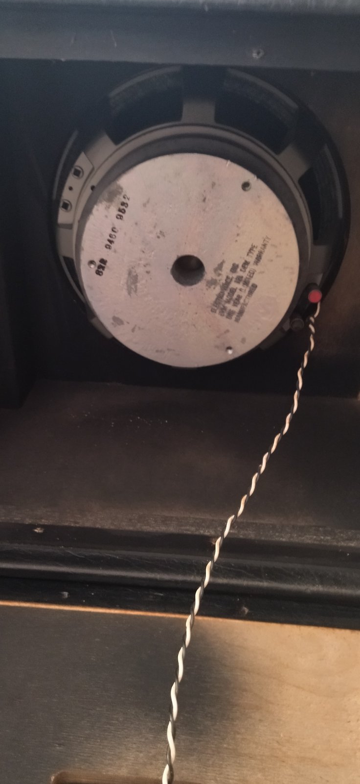 Je n'ai qu'une entrée jack à l'arrière, les modèles plus récent en on 2 en parallèles. Le miens n'est pas exactement comme celui de la photo (c'est un ancien modèle avec le logo et la toile de protection légèrement différents).