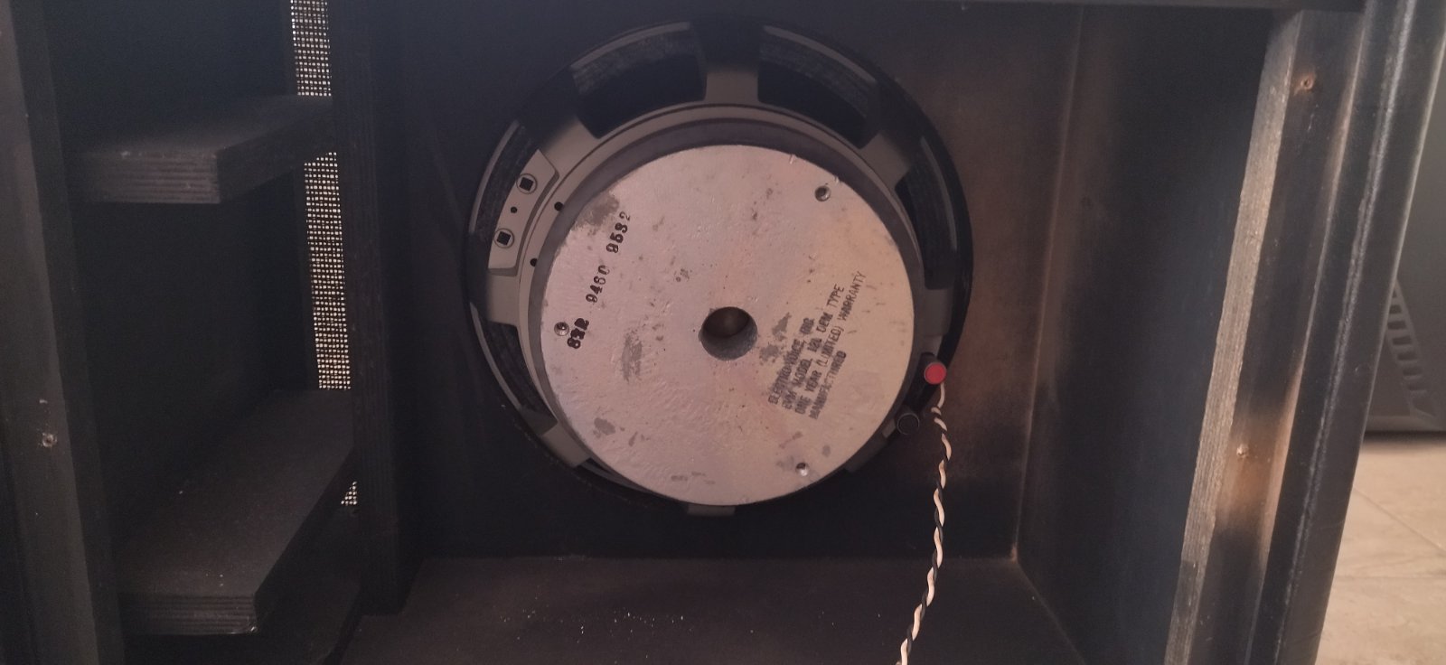C'est un baffle closed back basse reflex (fermé à l'arrière mais avec un évent à l'avant). Le miens est équipé d'un HP Electro Voice EVM12L (12" - 8 Ohms - 200 watt) mais les modèles plus récents sont souvent équipés d'un Celestion C90.