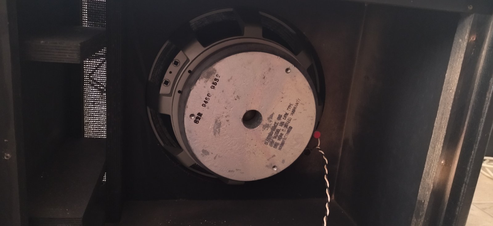 Publié le 17/12/08 à 20:07C'est un baffle closed back basse reflex (fermé à l'arrière mais avec un évent à l'avant). Le miens est équipé d'un HP Electro Voice EVM12L (12" - 8 Ohms - 200 watt) mais les modèles plus récents sont souvent équipés d'un Celestion C90.