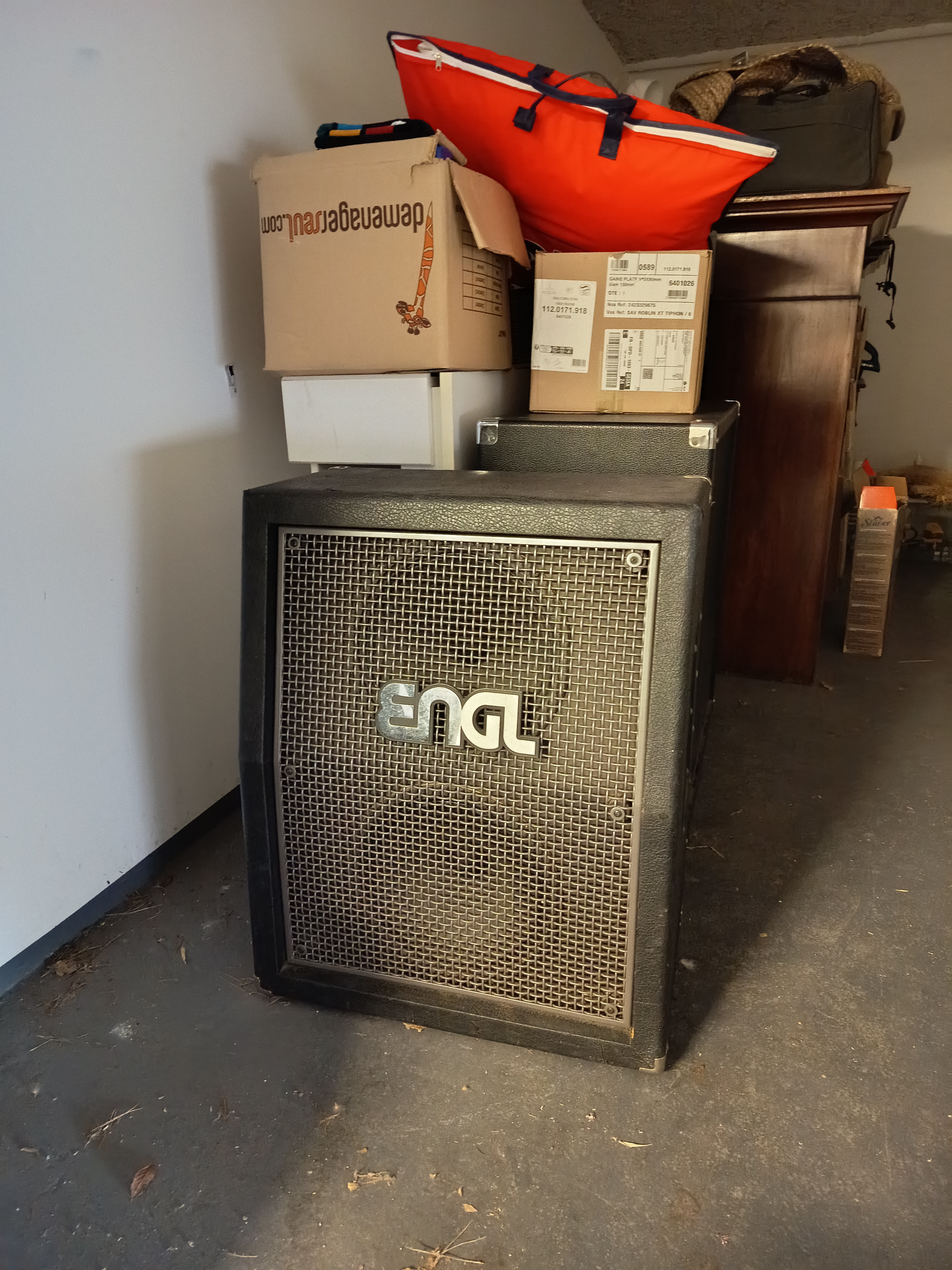 Salut à tous,Je vends mon baffle Engle 2x12 (Vintage 30), état assez bon. Marche parfaitement. Un son très droit et qui, grâce à sa fabrication en multiplis, encaisse parfaitement les basses, contrairement aux Marshall d'aujourd'hui en aglo, qui partent en cacahuètes, au moindre riff métal. je jouai dessus, avec une tête Diezel VH4 100W, carrément top, ça bronche pas, et ce baffle, à qualité égale, est moins cher qu'un Diezel...