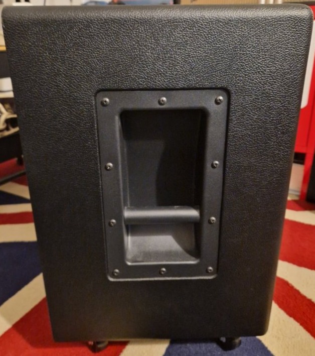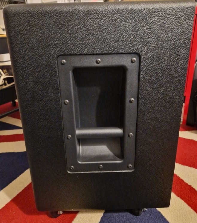 Construction en multiplis bouleau de 18mm, poignées en acier, roulettes déclipsables, équipé en Celestion Vintage 30 pour une impédance totale de 8 ohms.