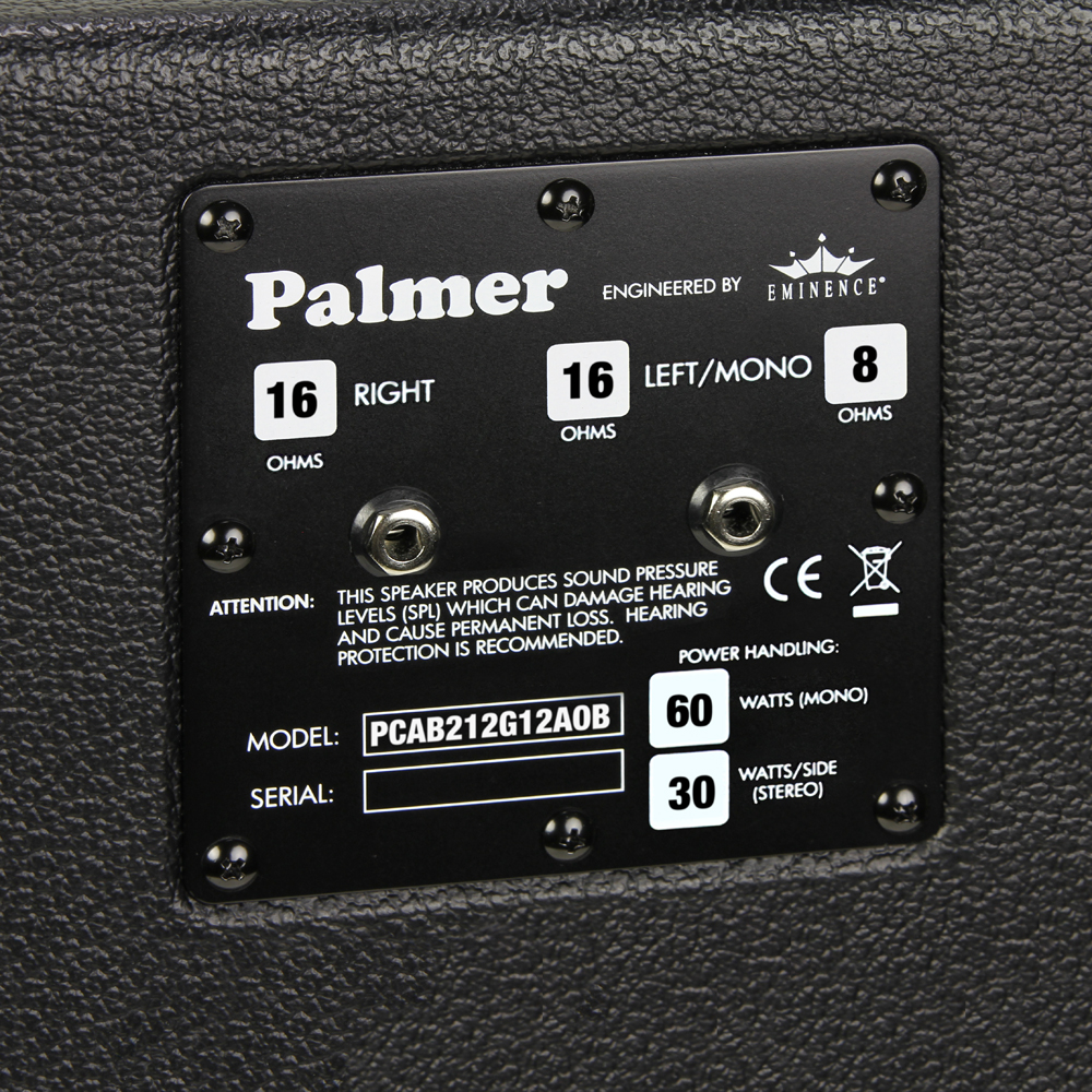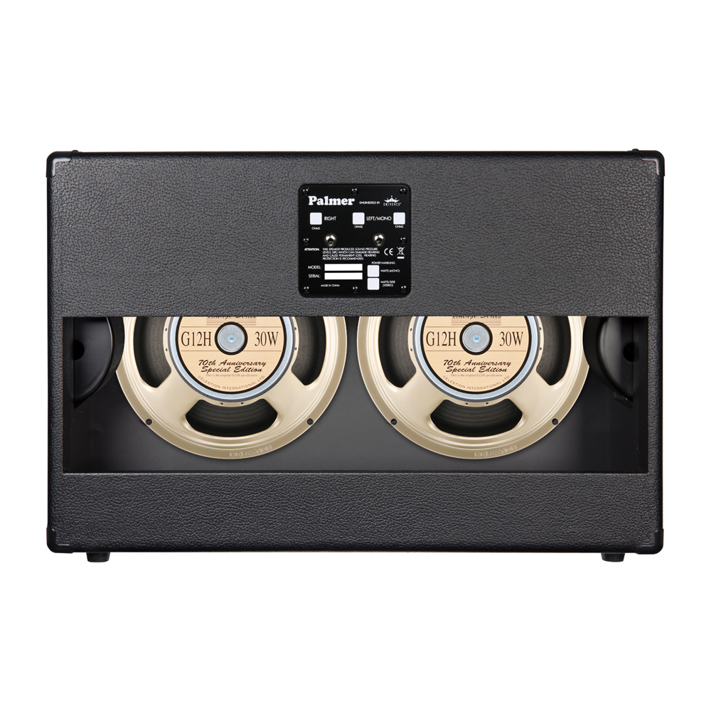 Les deux modèles Palmer MI Custom Cab 212 et 412 sont équipés de deux ou quatre HP Celestion G21H Anniversary de 12” qui délivrent un son vintage. Le modèle 212 présente un caisson droit ouvert à l’arrière et propose des impédances de 8 ou 16 Ohms, tandis que le modèle 412 est fermé avec un angle en façade et ajoute une impédance de 4 Ohms.
