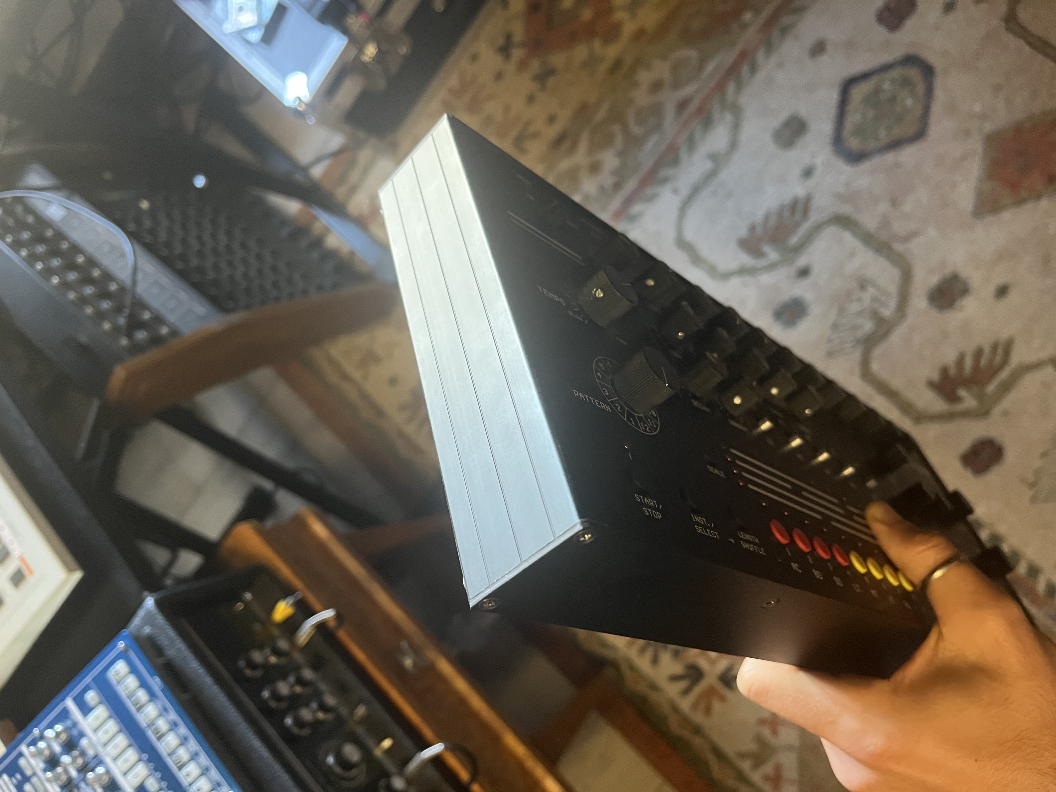 La programmation est ultra simple et se fait via le potard 'TRACK-PATTERN' puis INST/SELCT et c'est parti! La possibilité de cumuler aisément jusqu'à 5 tracks de 16 pas en suivi permet de varier le jeu et d'apporter toutes les nuances nécessaires à une séquence rythmique. Ca à l'air de rien mais un paquet de machines soit disant plus poussées ne le permettent même pas…