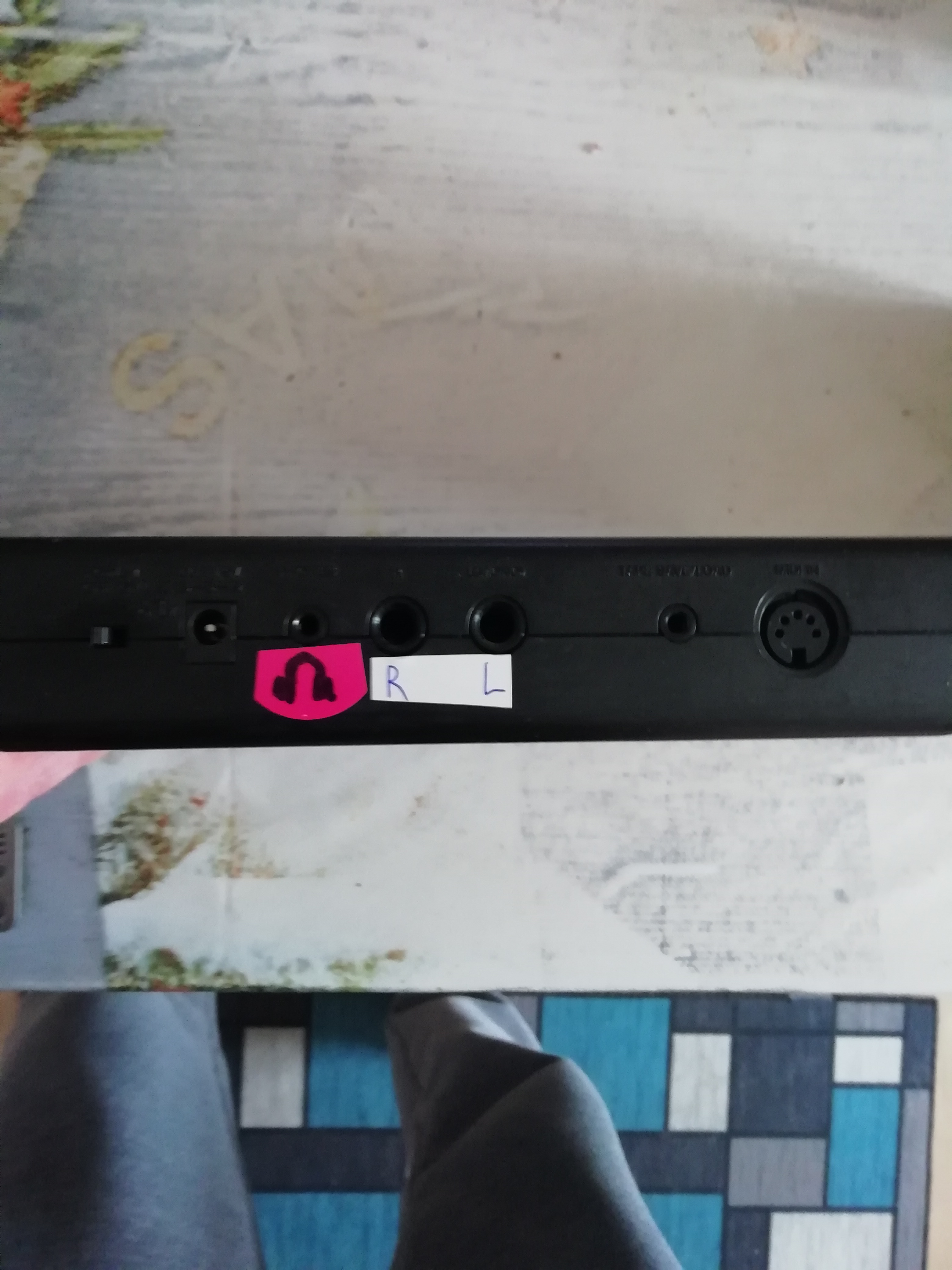 la BAR dispose d'une entrée Midi d'une sortie audio stereo(2 jack mono), une sortie casque et d'une entrée d'alim 9v
