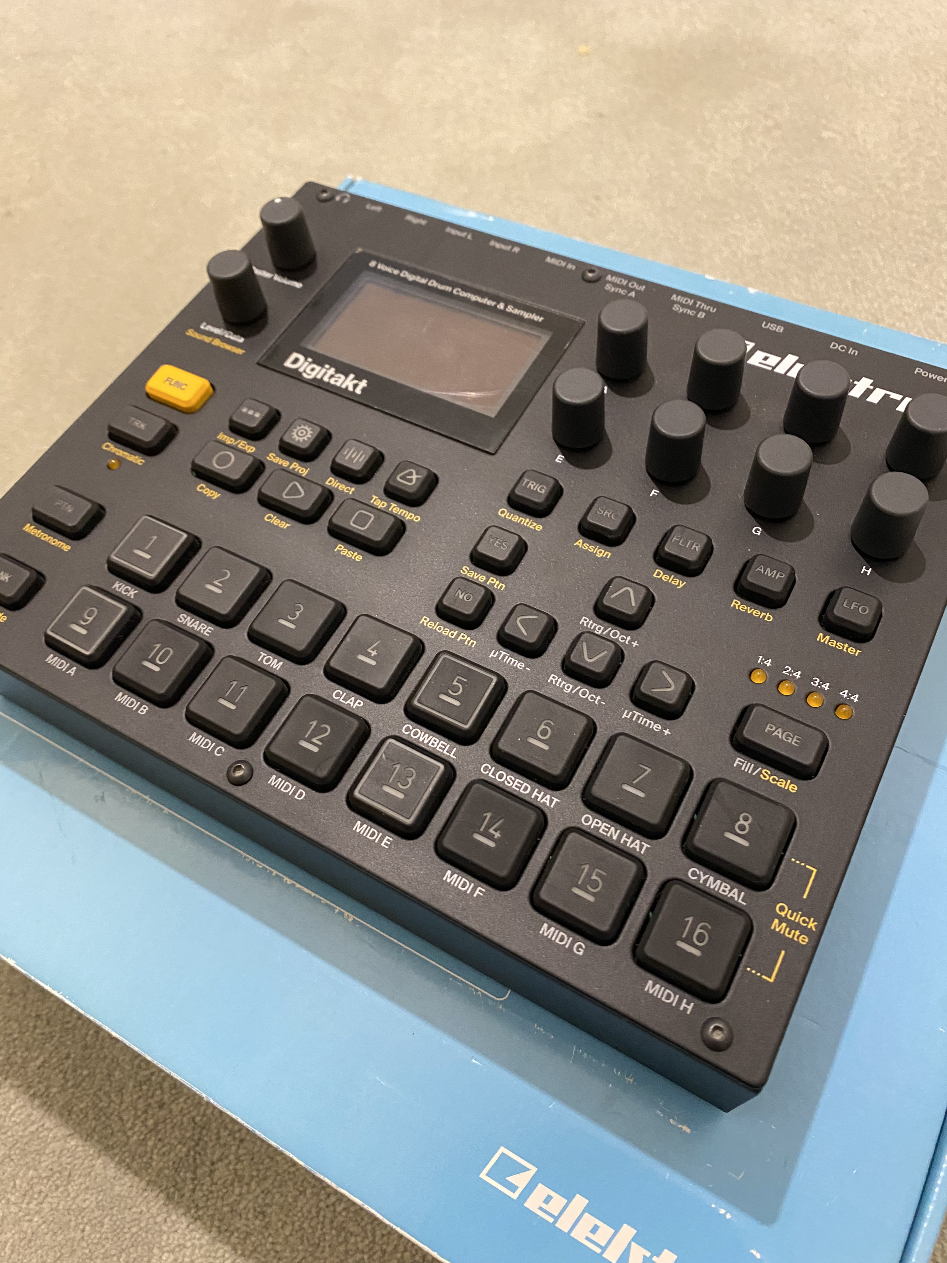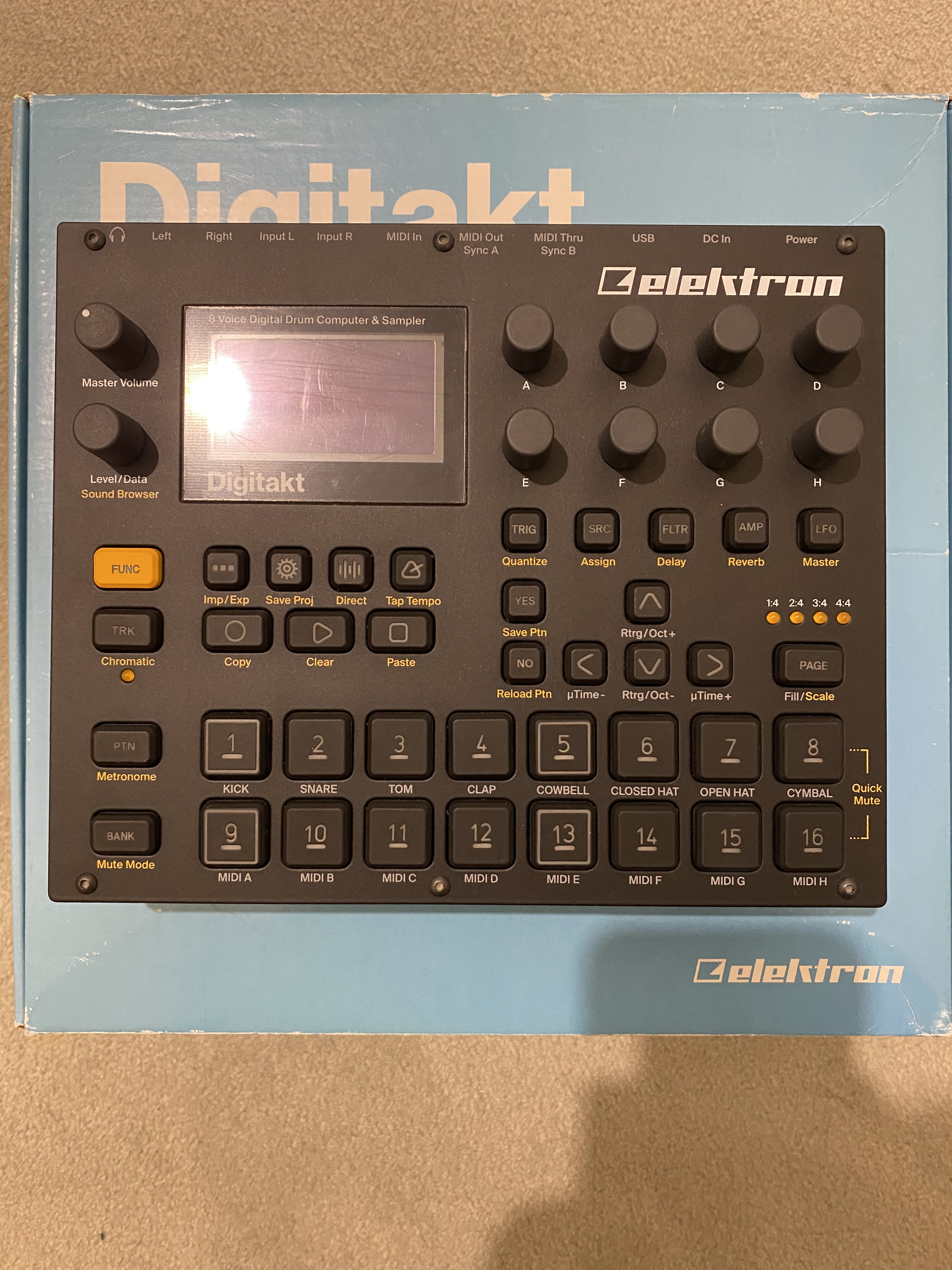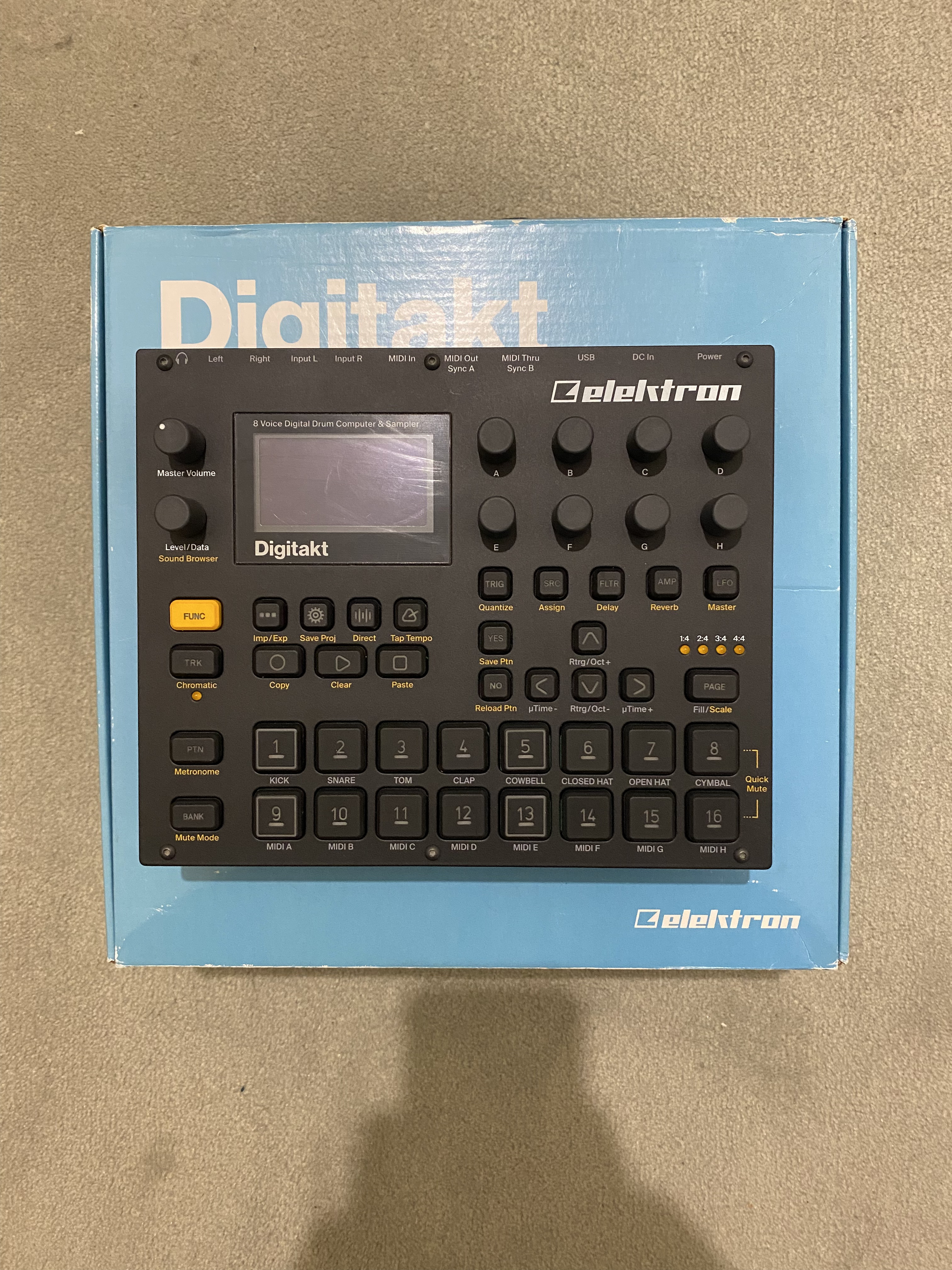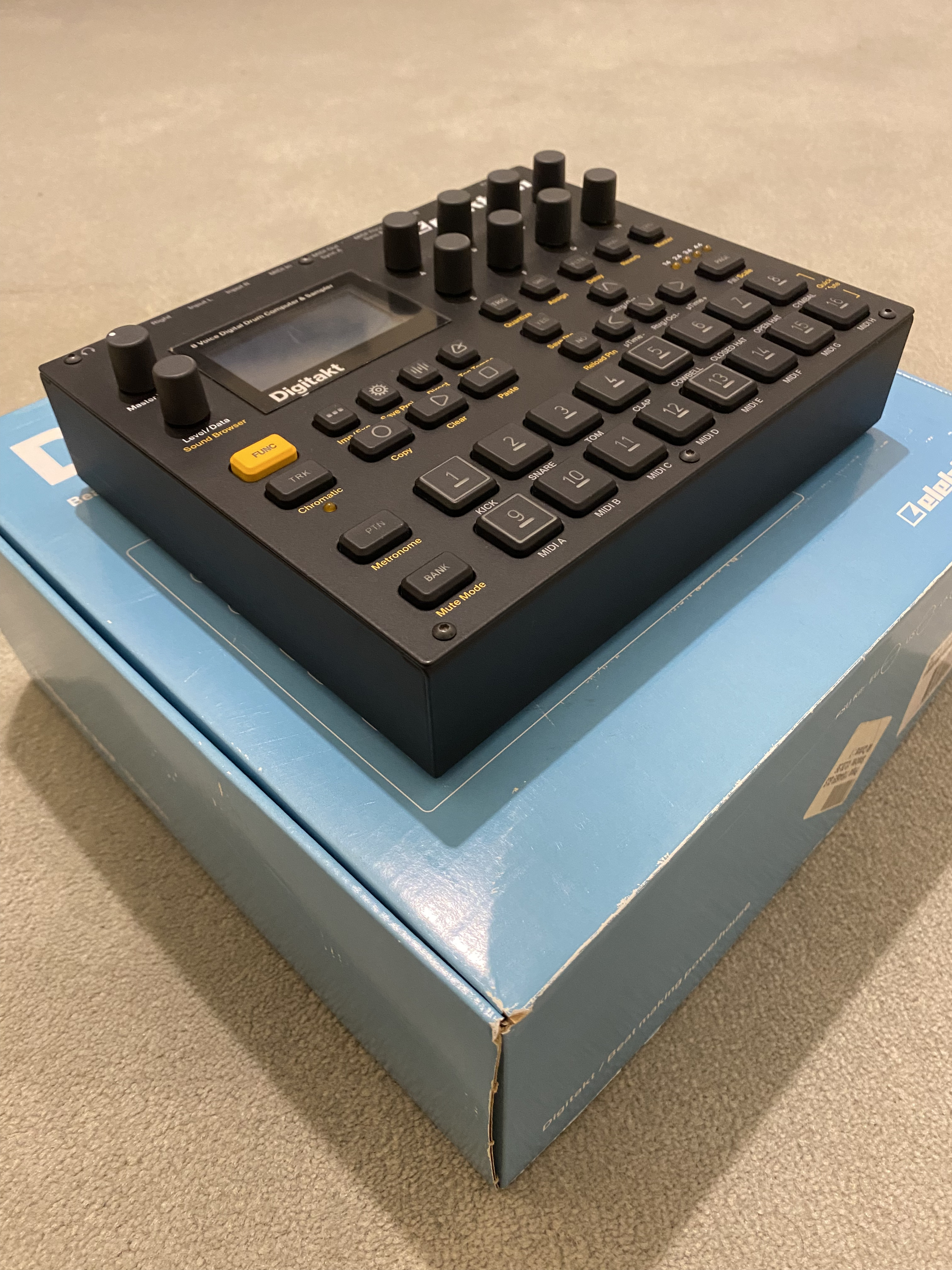 Je vends mon Elektron Digitakt dans un état proche du neuf. Elle fonctionne parfaitement et n'a aucun défaut esthétique, je l'ai très peu utilisée et c'est la raison pour laquelle je m'en sépare.Tous les accessoires ainsi que la boîte d'origine sont inclus. Le film de protection est toujours collé à l'écran, donc les quelques "rayures" visibles sur les photos sont sur le film et non sur l'écran en lui-même.