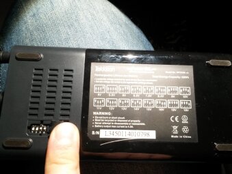 Le réglage de la tension de sortie se fait par des petits switchs sous la batterie, en suivant un schéma indiqué. Il faudra bien vérifier les switchs avant de brancher votre machine, surtout si vous passer de l'analog 4 à une autre machine.