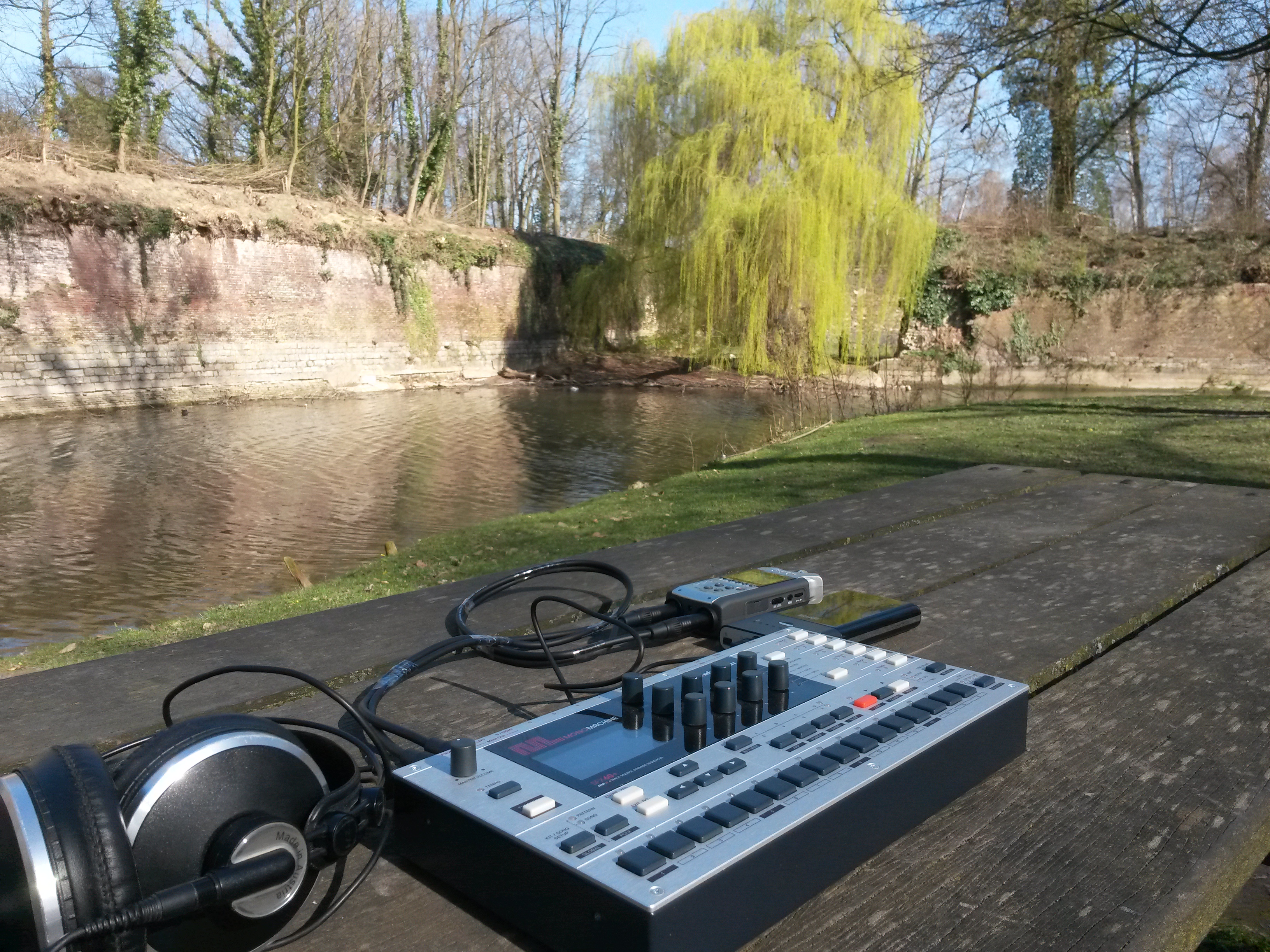 Une fois le bon réglage vérifié, vous pouvez brancher votre machine sur la batterie comme vous le feriez avec l'alimentation secteur. Et là, c'est magique ! Vous prenez conscience que vous pouvez maintenant utiliser la machine où bon vous semble !! Ci-dessous, composition en extérieur avec la monomachine, à la citadelle de Lille.