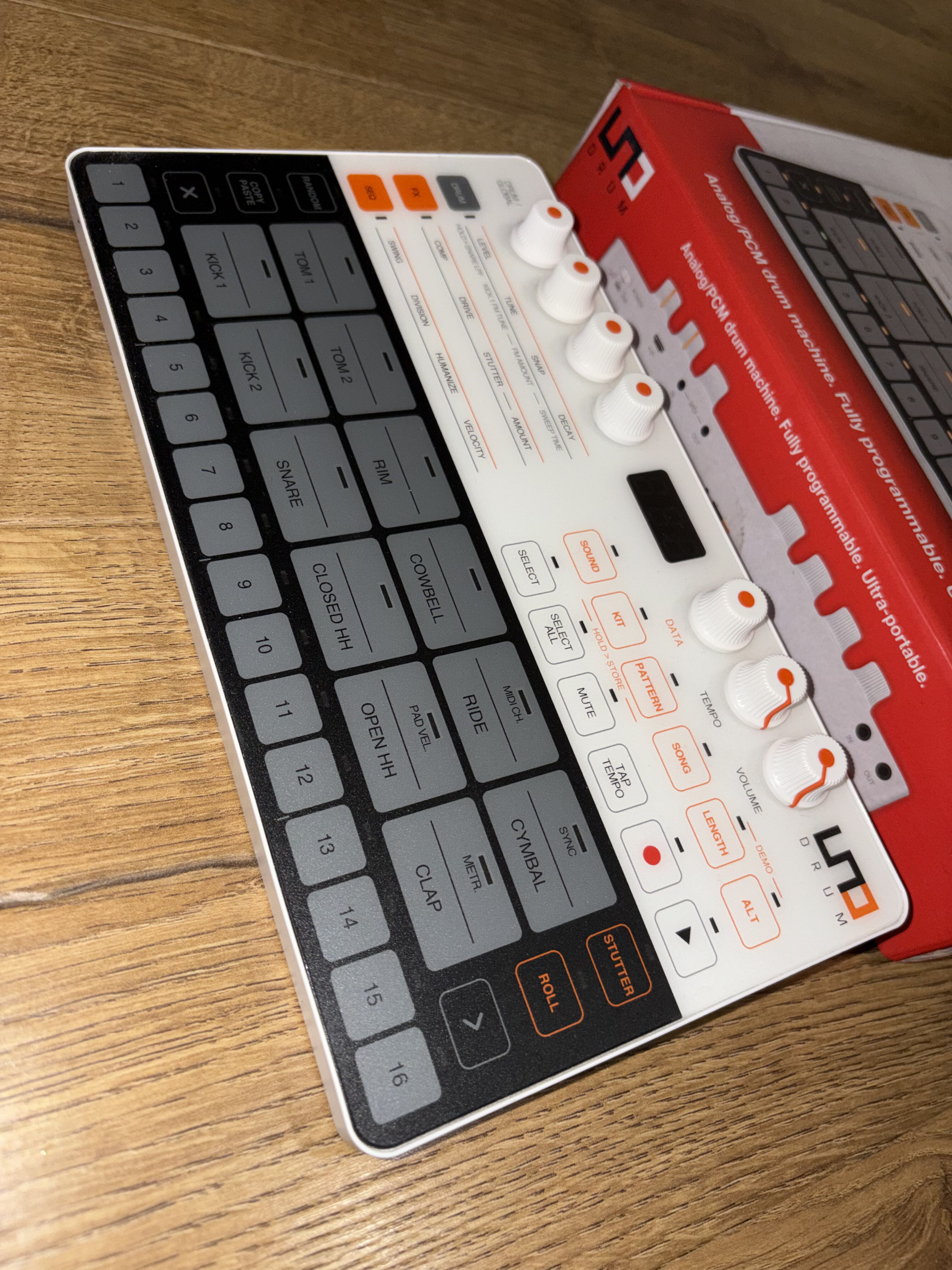 Elle est très compact et bien plus solide qu'elle en a l'air. Très bien conçu pour la programmation des sons et le sequencer est très simple pour qui sait utiliser une Tr. Toute les fonctions sont dispo sur la bécane, pas besoin d'un controlleur ou d'utiliser un editeur sur ordi.
