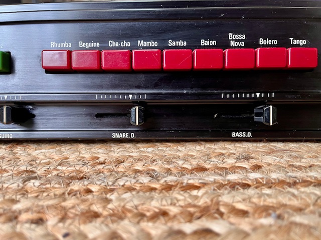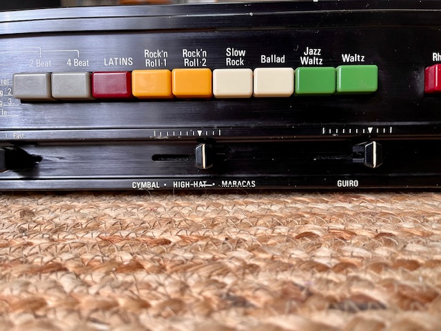 Boîte à rythmes analogique vintage japonaise, c’est la même que la Roland TR-77 et quasi les mêmes sons que la CR68 / CR78.