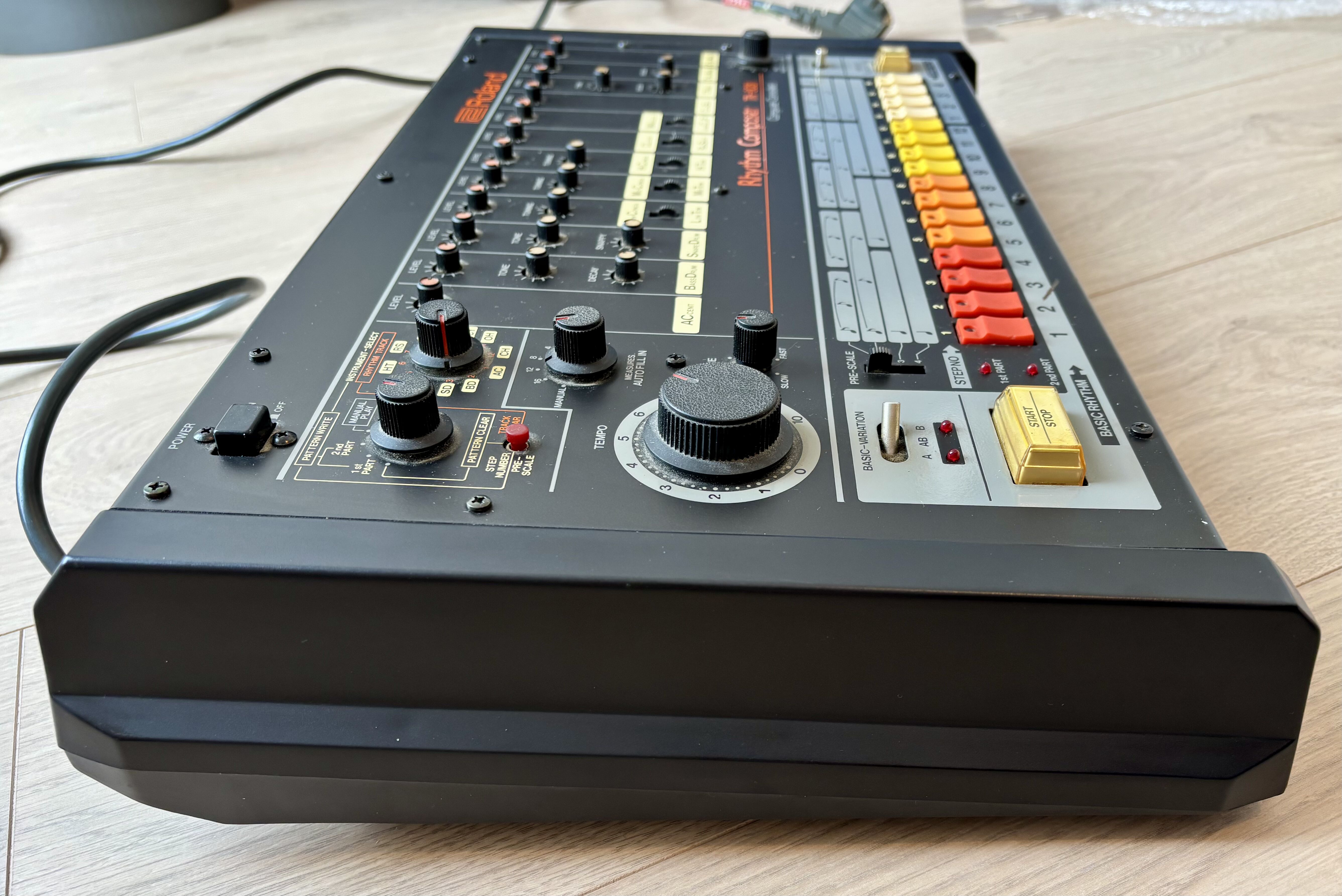 Pour en avoir acheté 2, une flambant neuve dans les années 80, puis une autre dans la fin des années 90 je peux garantir l'extraordinaire qualité et robustesse de cette machine, pas facile à maîtriser au début, mais une fois en main c'est un régal, j'ai enregistré un bon nombre de chansons dans les années 80 j'écrivais beaucoup et pour construire des maquettes quand on à pas ou (plus) de batteur ça aide un maximum. on peux composer pratiquement n'importe quel rythme avec des reprises des breaks là ou on veut, si je devais reprendre cette activité je chercherai une Roland TR-808, la légende des boite à rythme.