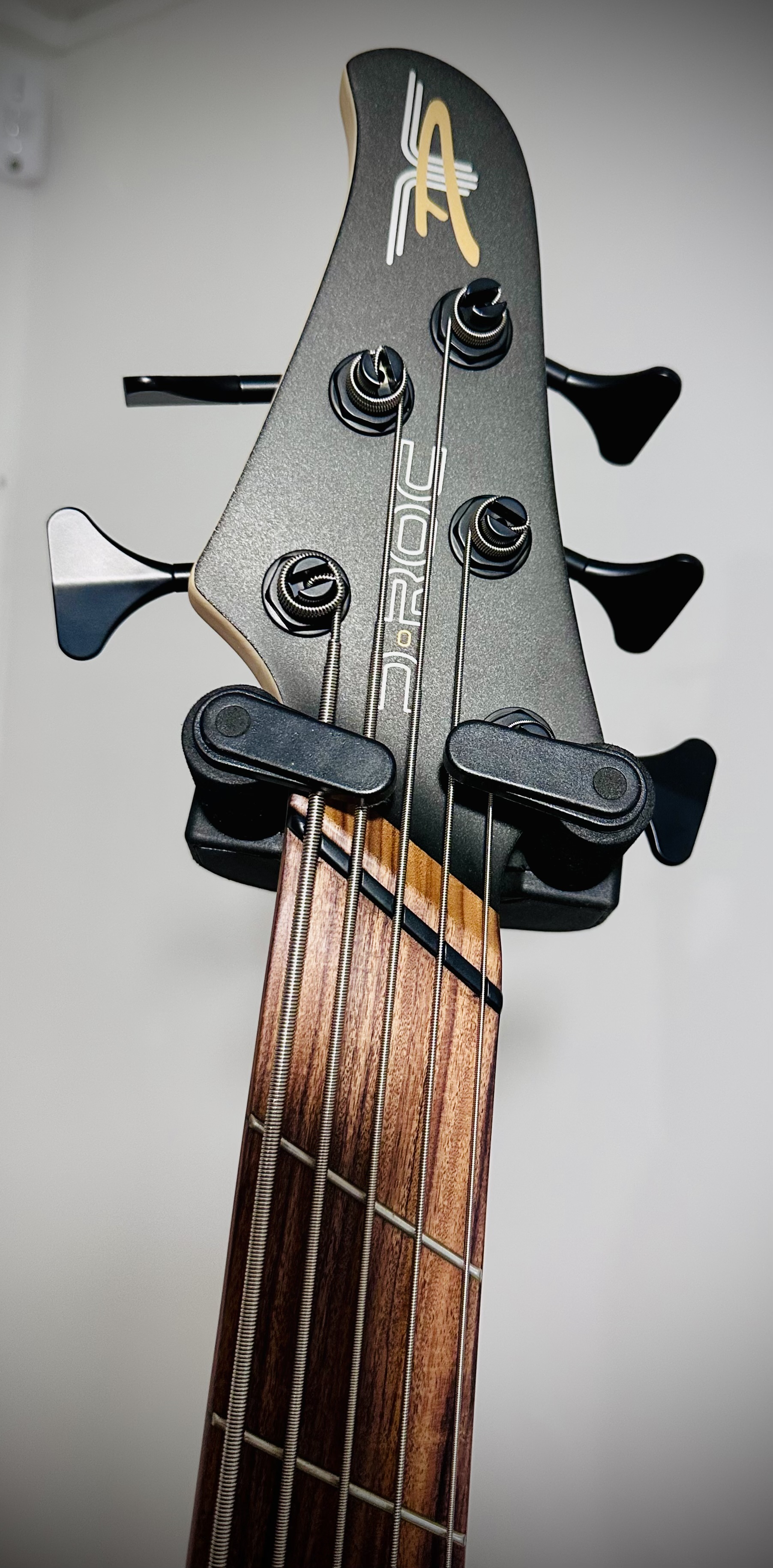 La D Roc est une basse passive, très simple à régler, avec volume, tone et un sélecteur de micros 4 positions (chevalet pour un son claquant à la jazz bass, chevalet + milieu en série pour un son à la music man, milieu pour un son type précision, et les trois micros ensemble pour un son monstrueux ?). La précision de la corde de Si est époustouflante.
