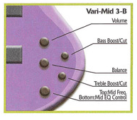 1 bouton de volume, 1 balance micro, egaliseur 3 bandes avec un medium paramétrique.