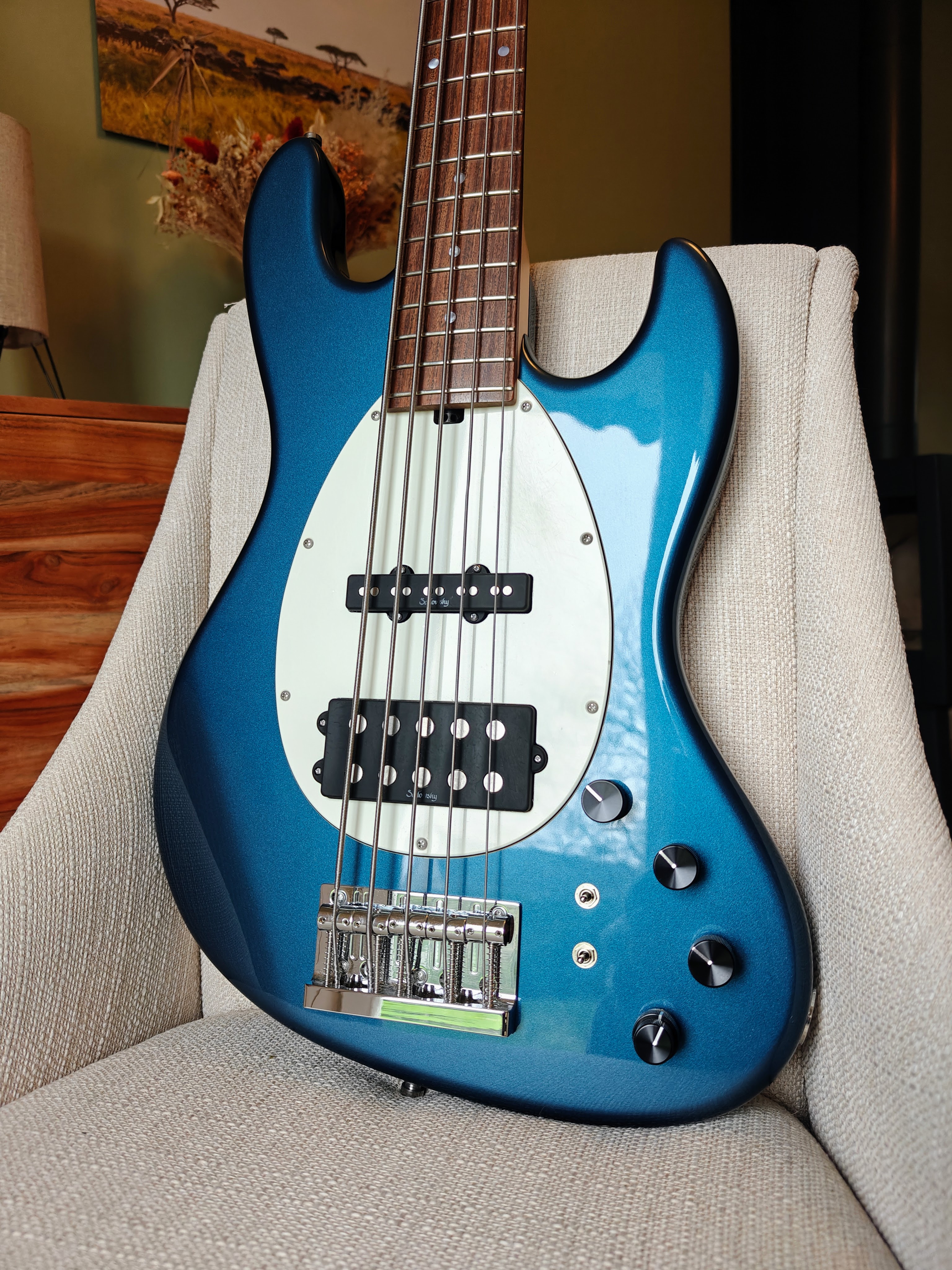 Bonjour,Je vends une Sadowsky MetroLine Vintage M/J 5 cordes de 2023, en couleur Solid Dark Lake Placid Blue Metallic High Polish.