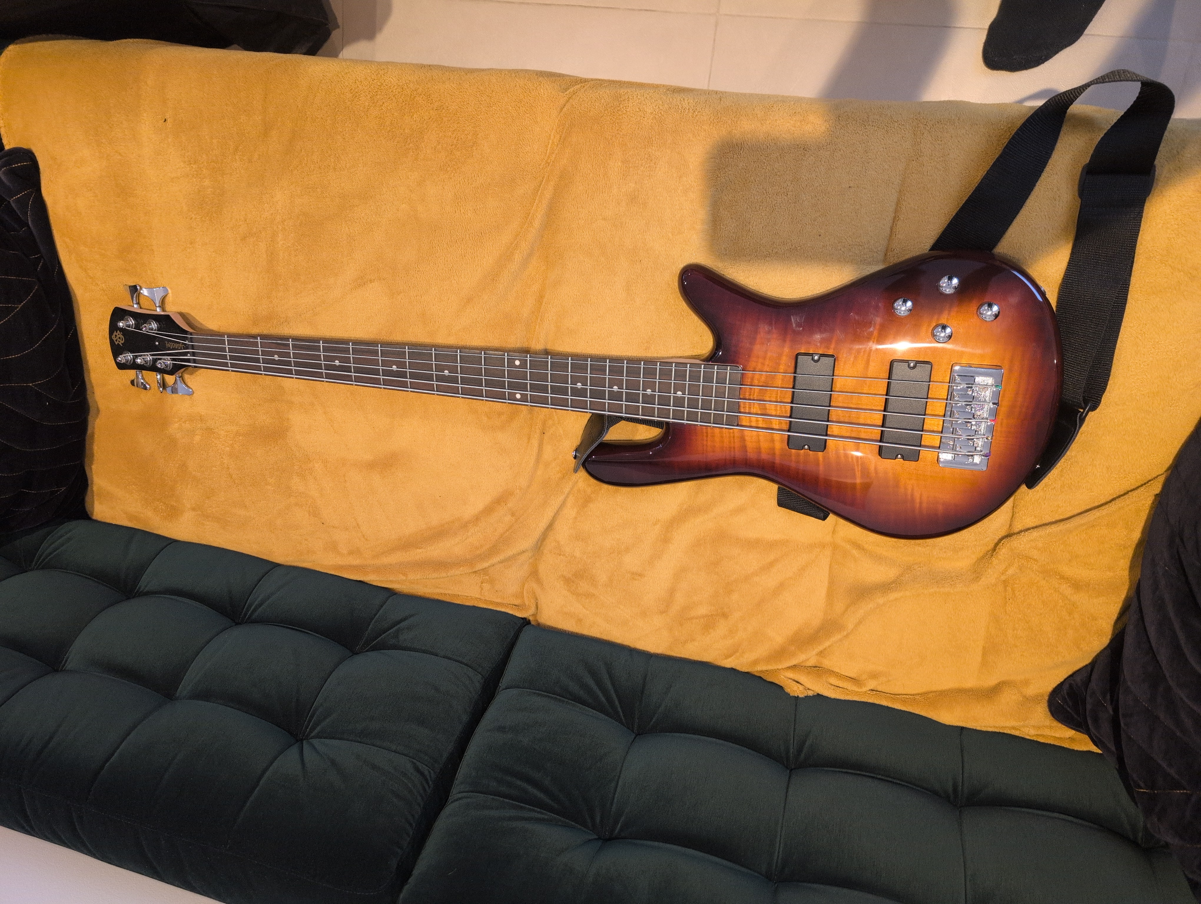 Bonjour a tous et a toutes.Je vend une spector legend 5 en parfait état. Elle sonne très bien, elle est légère, agréable, et elle est couleur sunburst. Je m'en sépare parce que je voudrais monter de gamme, mais c'est un excellent rapport qualité prix.