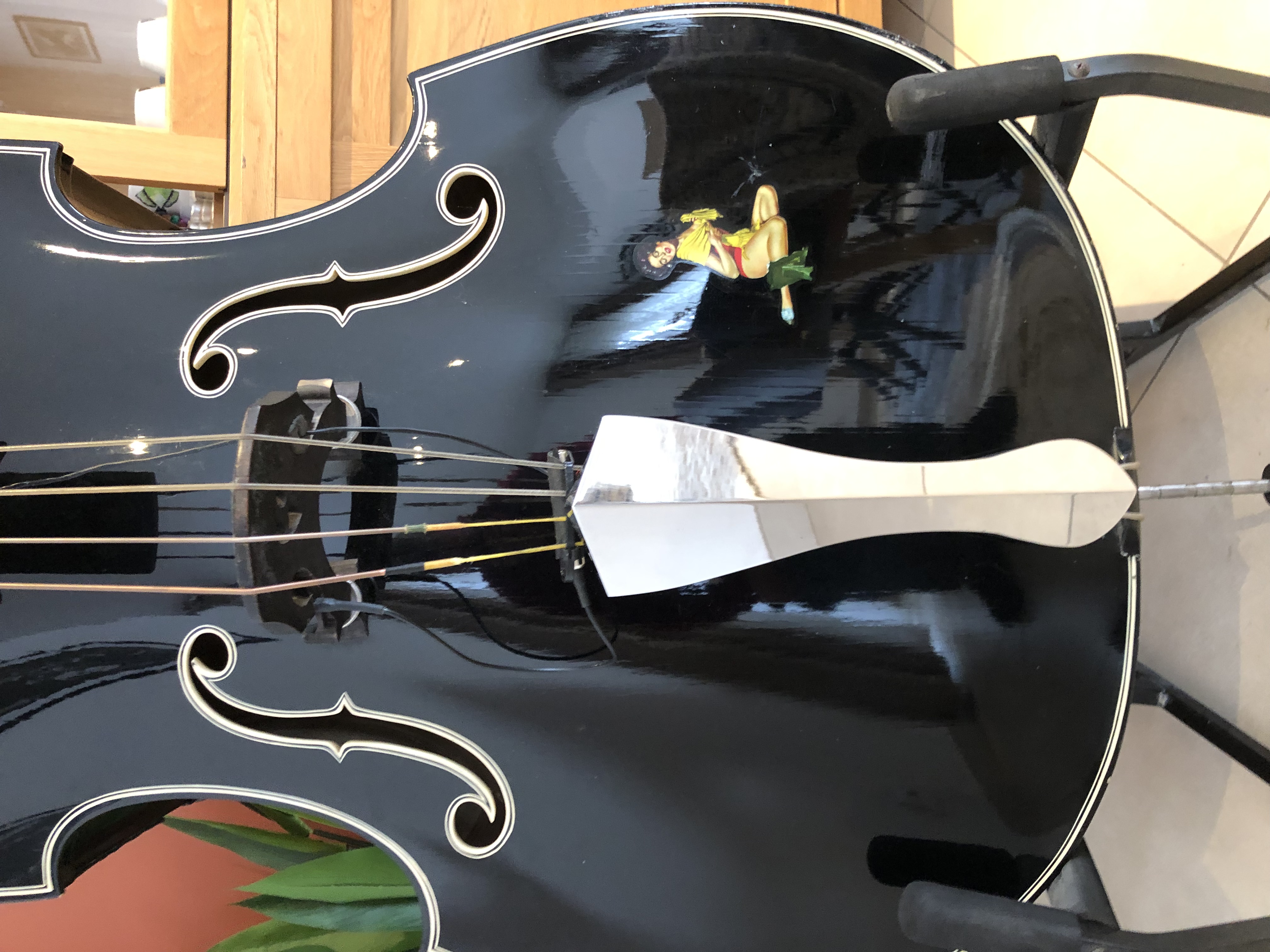 Contrebasse model RoadkingDe chez Kingdoublebass importée de Californie équipée de Micros « EMG » dont ils ont l’exclusivité de fabrication pour leurs contrebasses incrusté dans la touche par Le fabriquant .
