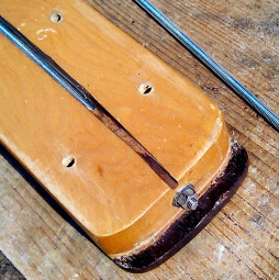 Au niveau du talon du manche, la rainure est arrêtée, j'ai fait un trou pour faire passer la tige.