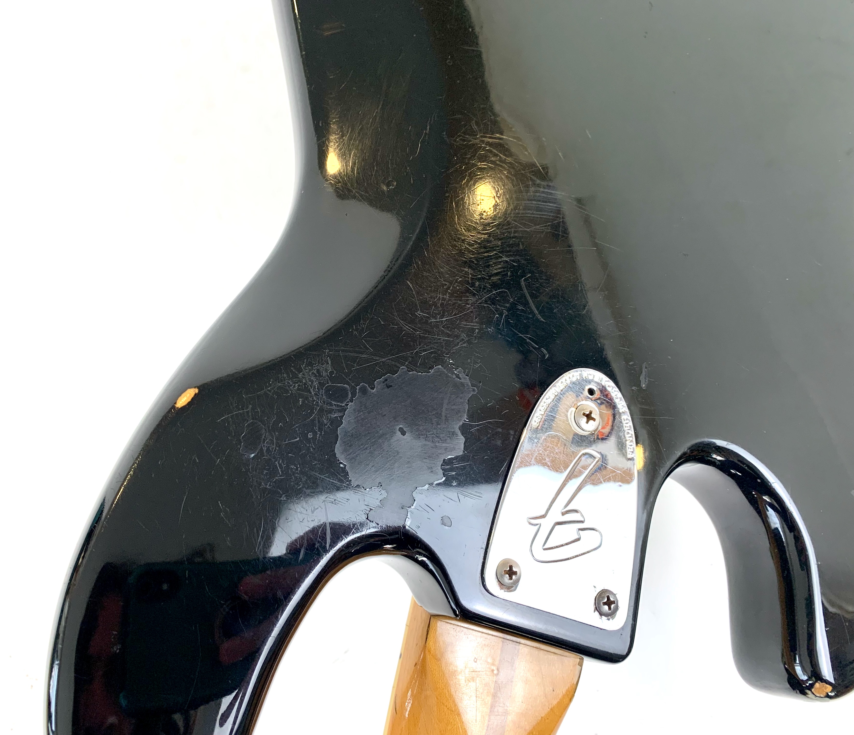 Apparue en 1960, la Jazz Bass s’est rapidement imposée comme la référence sur le marché. Celle-ci, de 1978, période CBS, se dote de repères block blancs sur une touche en érable au radius de 7,25 pouces, le tout souligné d'un binding autour du manche lui-même en érable. Le chevalet Schaller ainsi qu'un potentiomètre ont été remplacés, on notera par ailleurs une retouche de peinture au dos. Vendue en étui générique.Location, achat, vente, reprise, dépôt-vente.