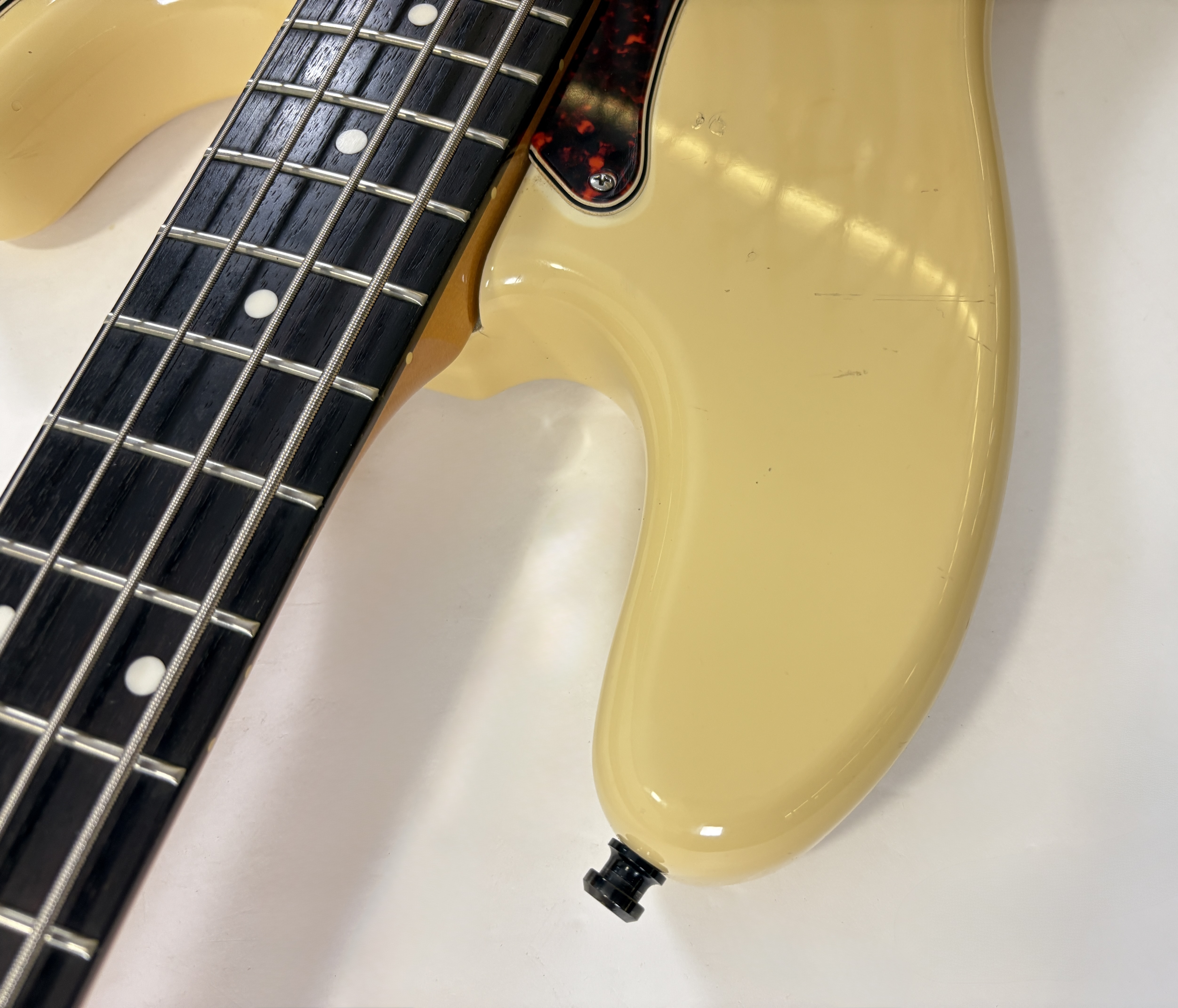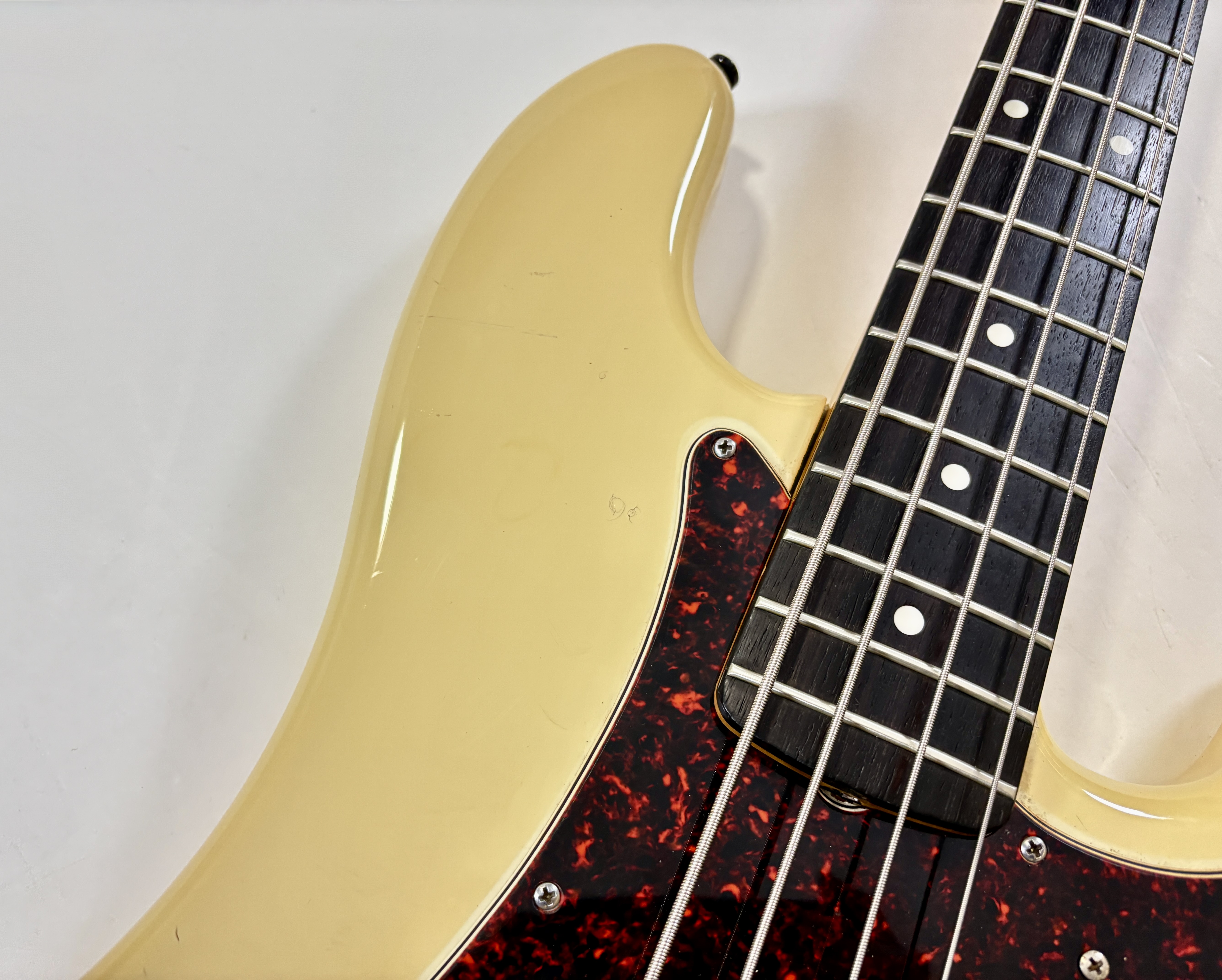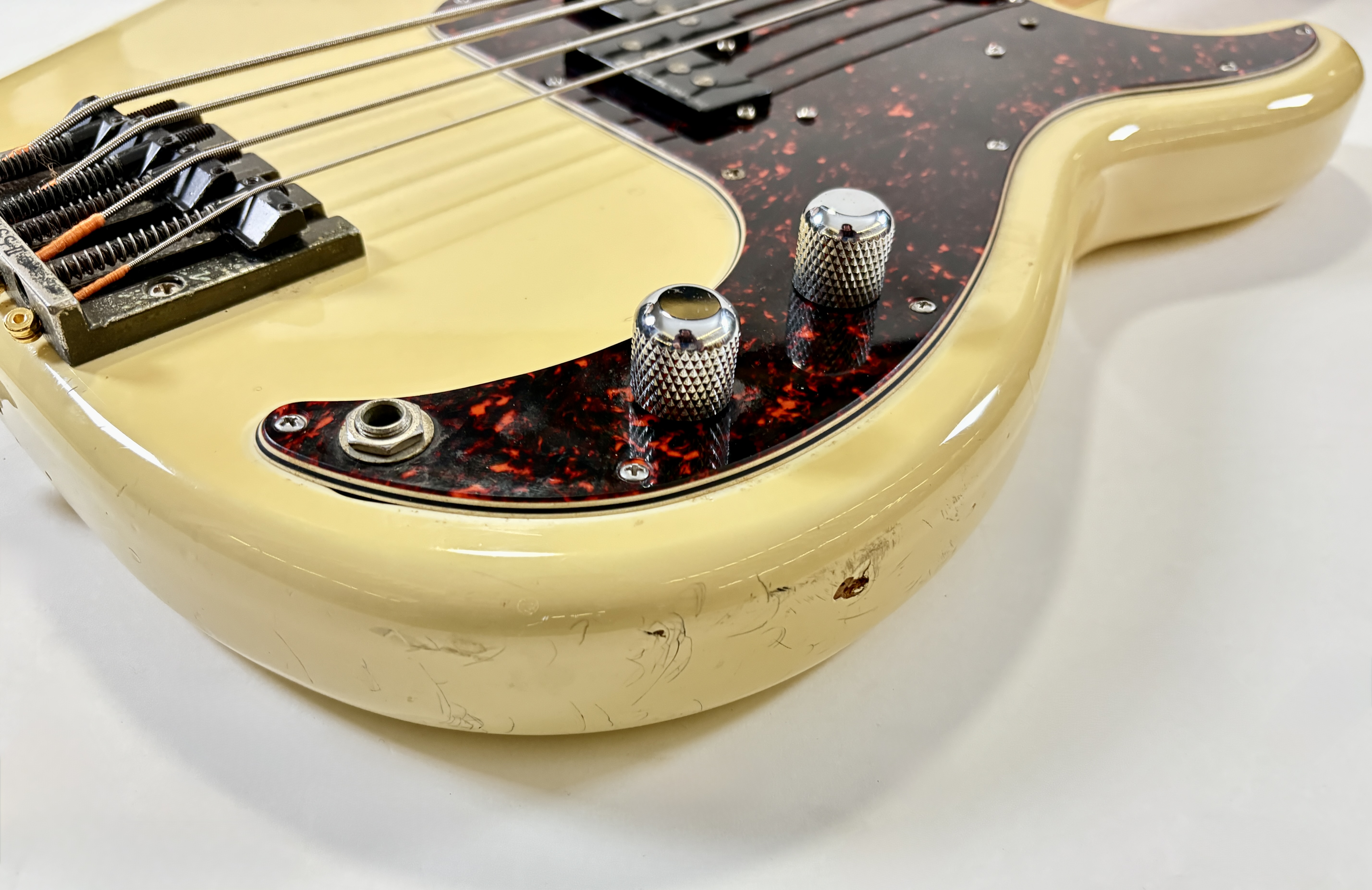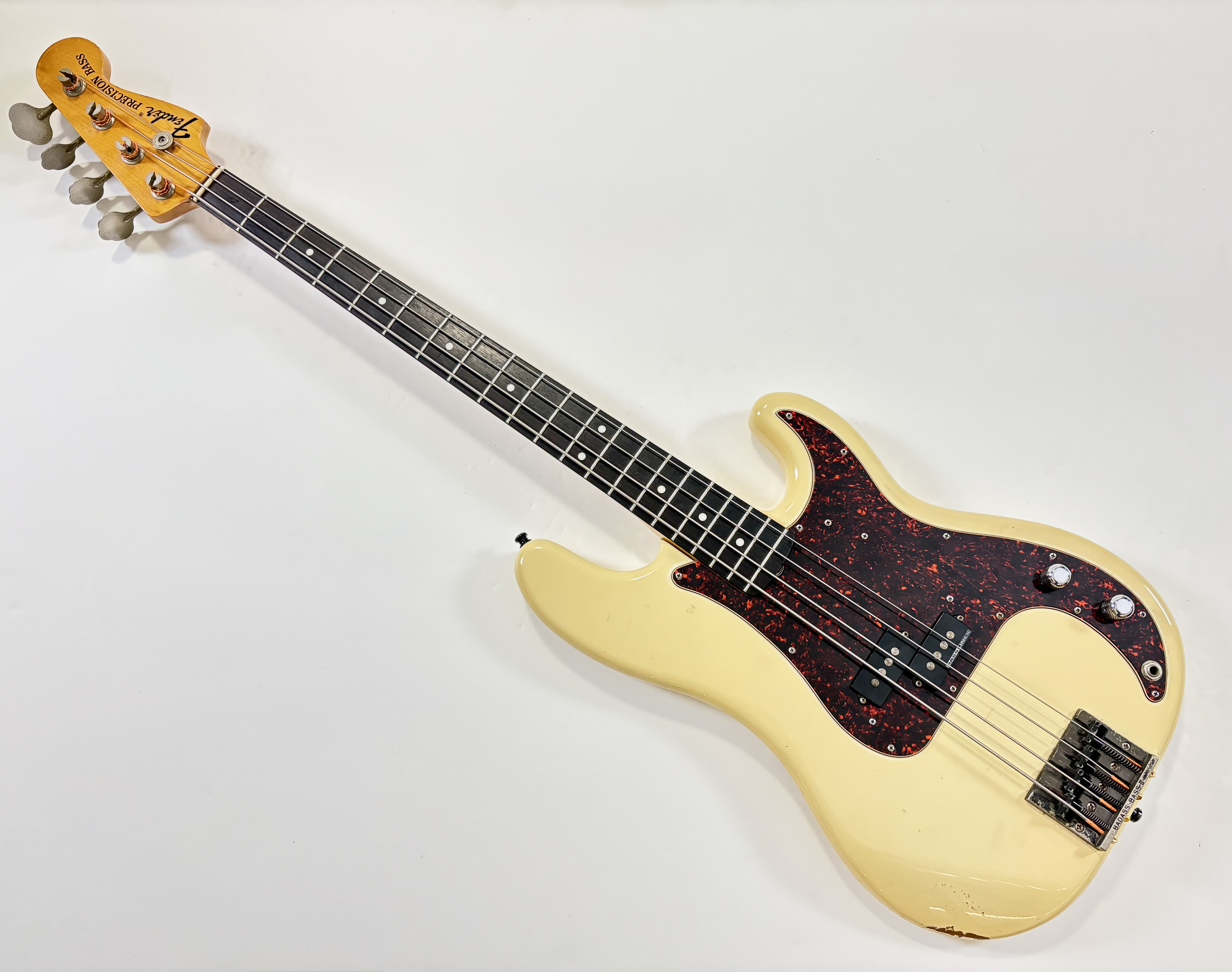 Pionnière parmi les basses, la Pbass sort en 1951 mais ne prend sa forme « définitive » qu’en 1957. La construction est ici classique avec un manche en érable, une touche en palissandre au radius de 7,25 pouces, le tout avec un corps de teinte Olympic White. Les micros a été remplacé par un Seymour Duncan Basslines Quarter Pound, le reste de l'électronique a suivi. On retrouve la qualité exemplaire de lutherie, d'assemblage et de finition propre aux productions nippones.Location, achat, vente, reprise, dépôt-vente.