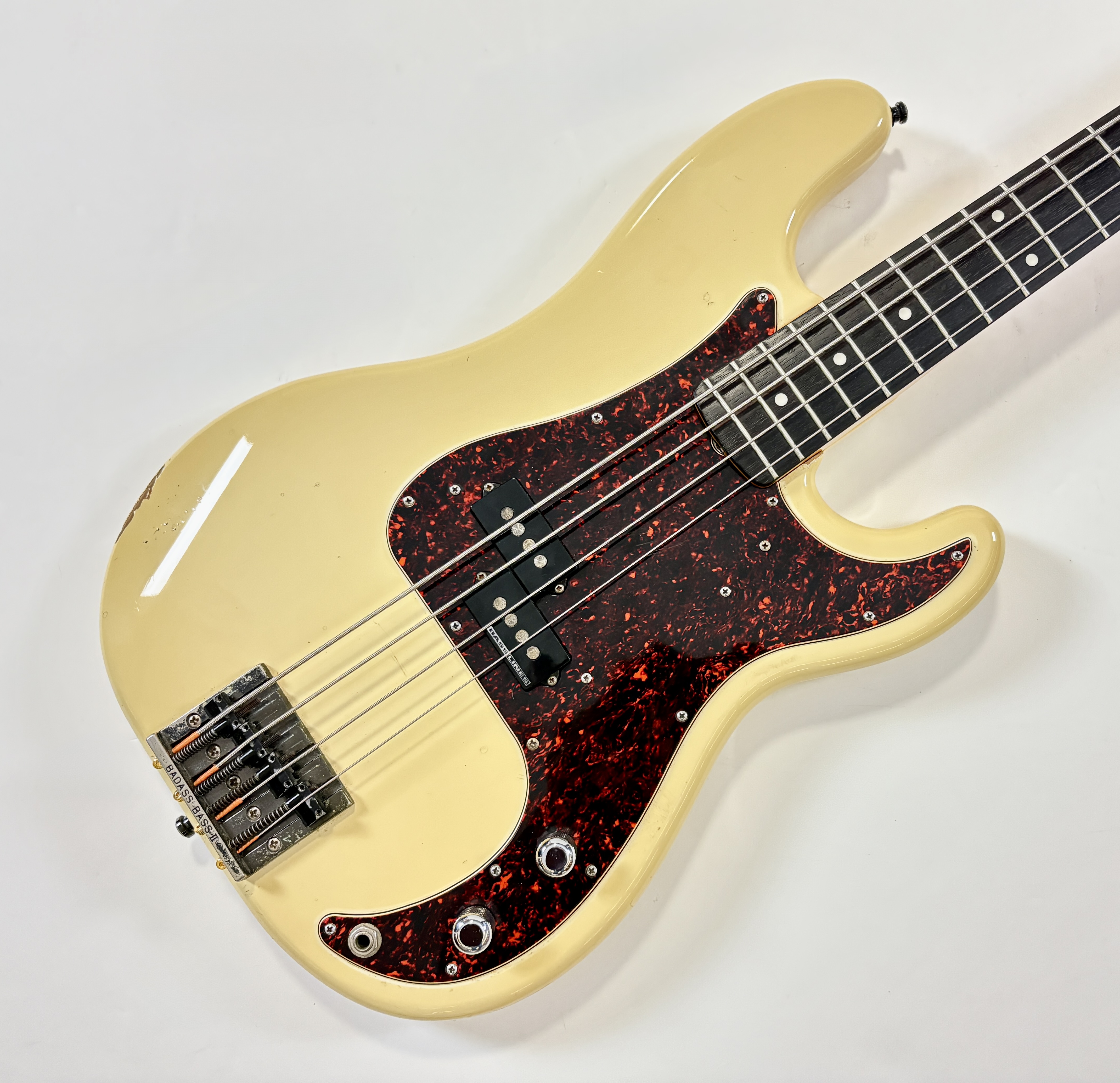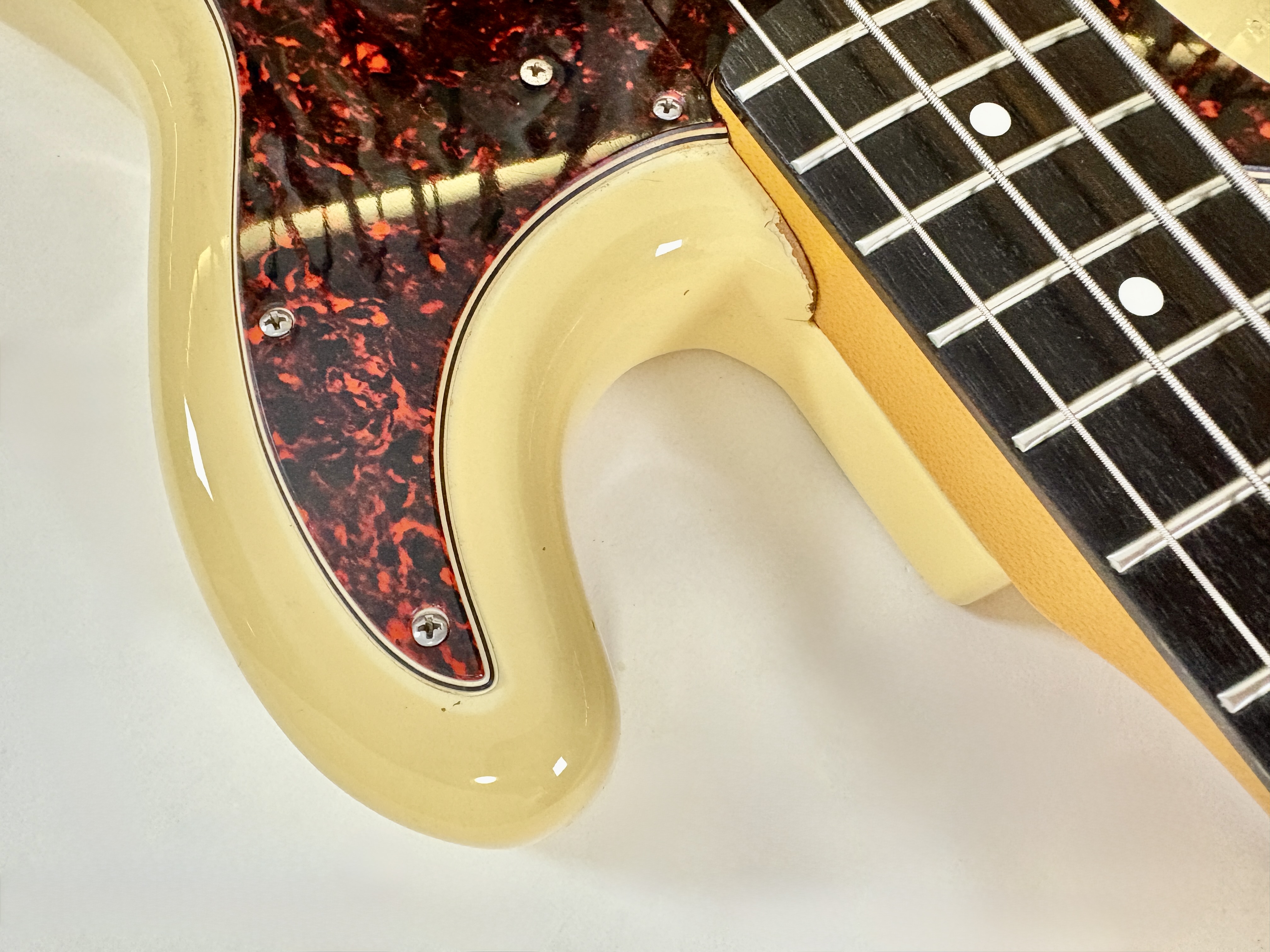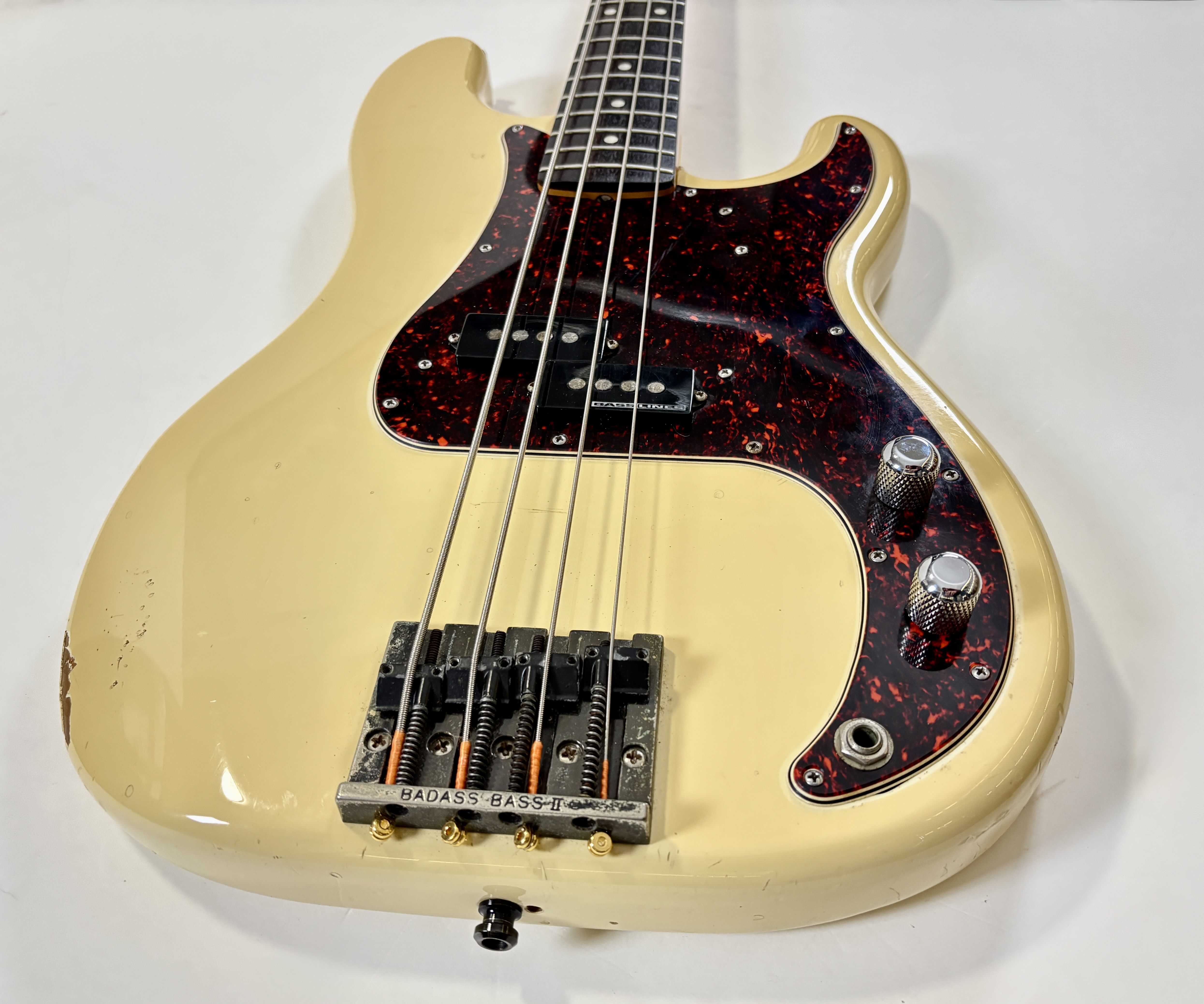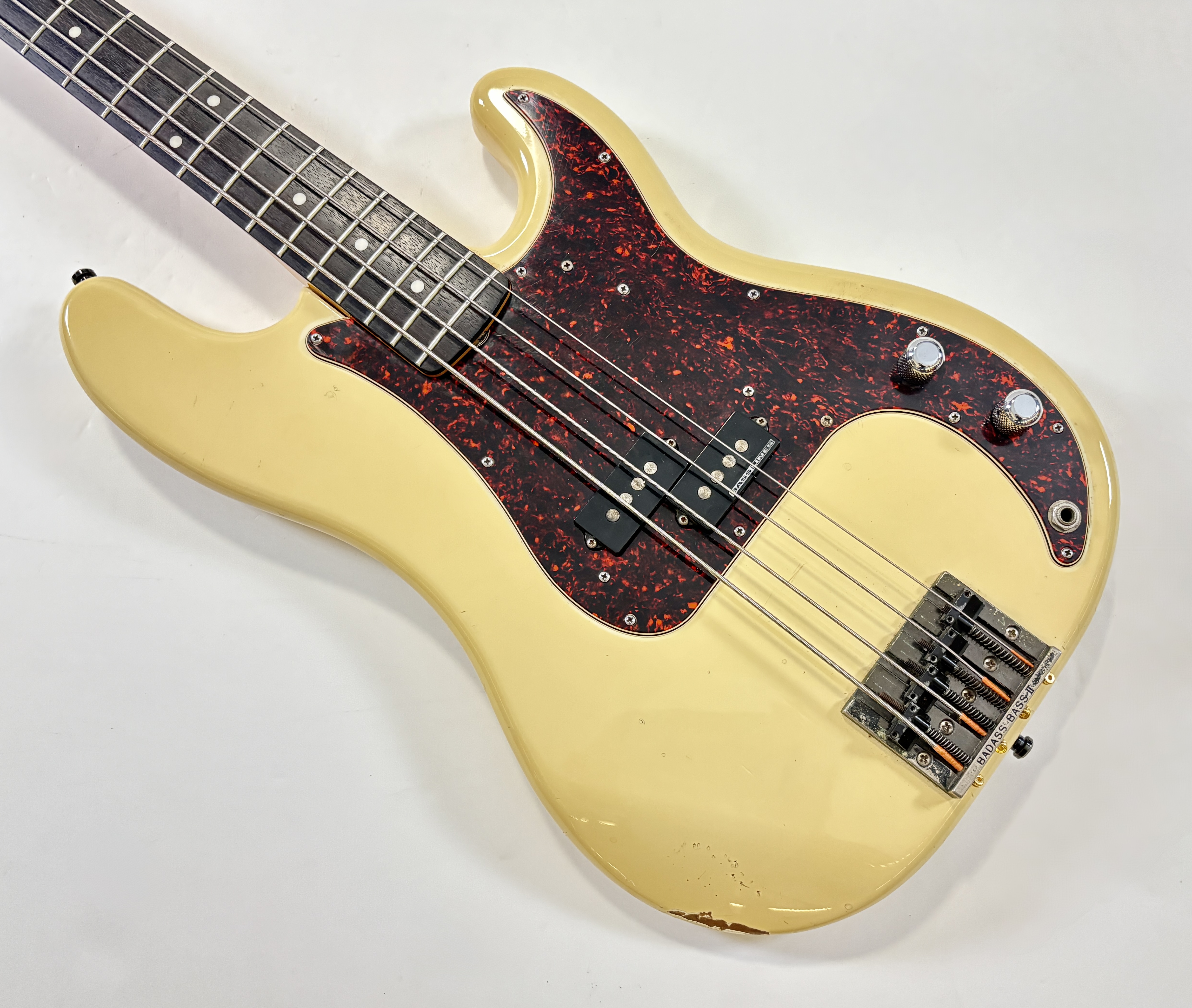 Pionnière parmi les basses, la Pbass sort en 1951 mais ne prend sa forme « définitive » qu’en 1957. La construction est ici classique avec un manche en érable, une touche en palissandre au radius de 7,25 pouces, le tout avec un corps de teinte Olympic White. Les micros a été remplacé par un Seymour Duncan Basslines Quarter Pound, le reste de l'électronique a suivi. On retrouve la qualité exemplaire de lutherie, d'assemblage et de finition propre aux productions nippones.Location, achat, vente, reprise, dépôt-vente.