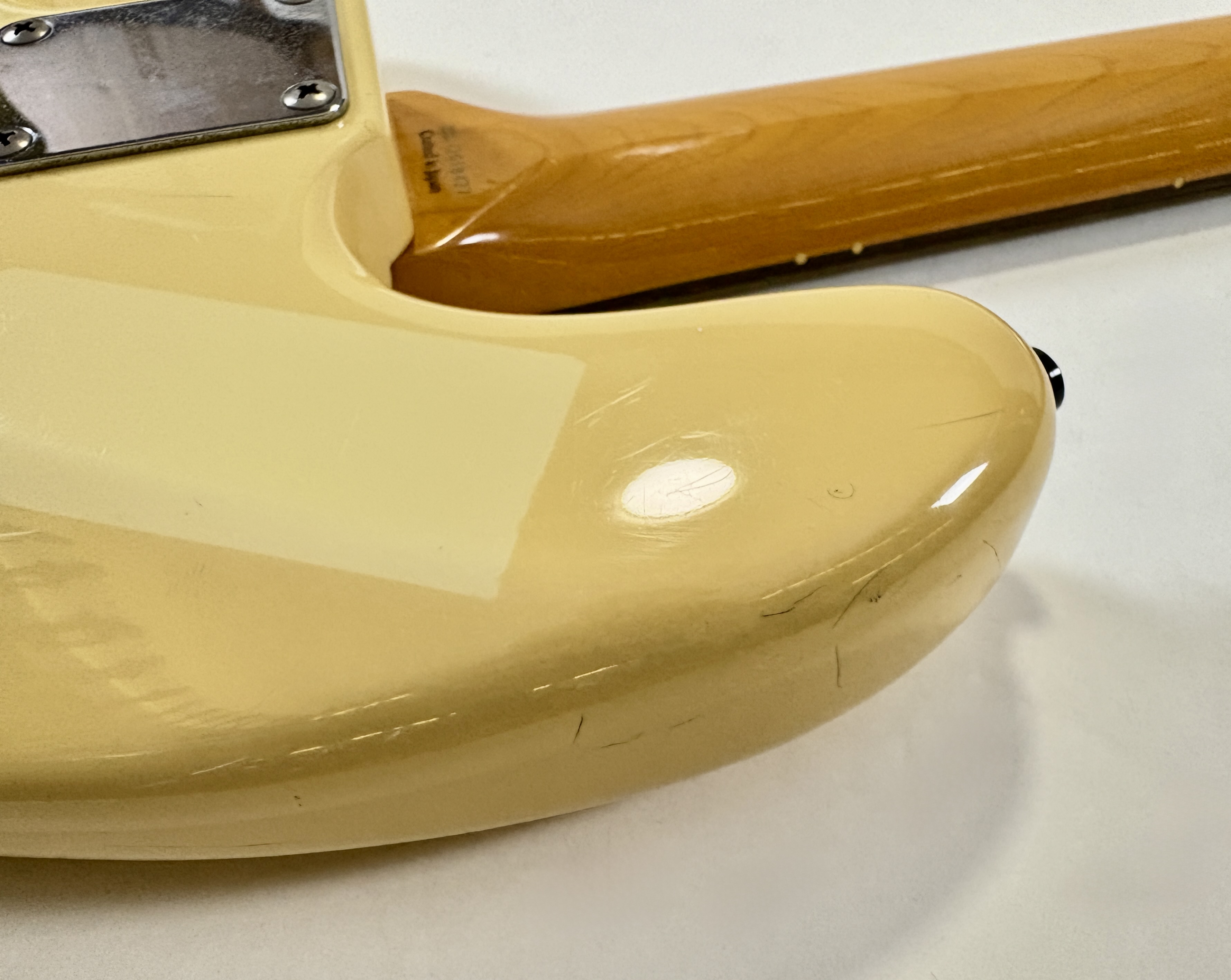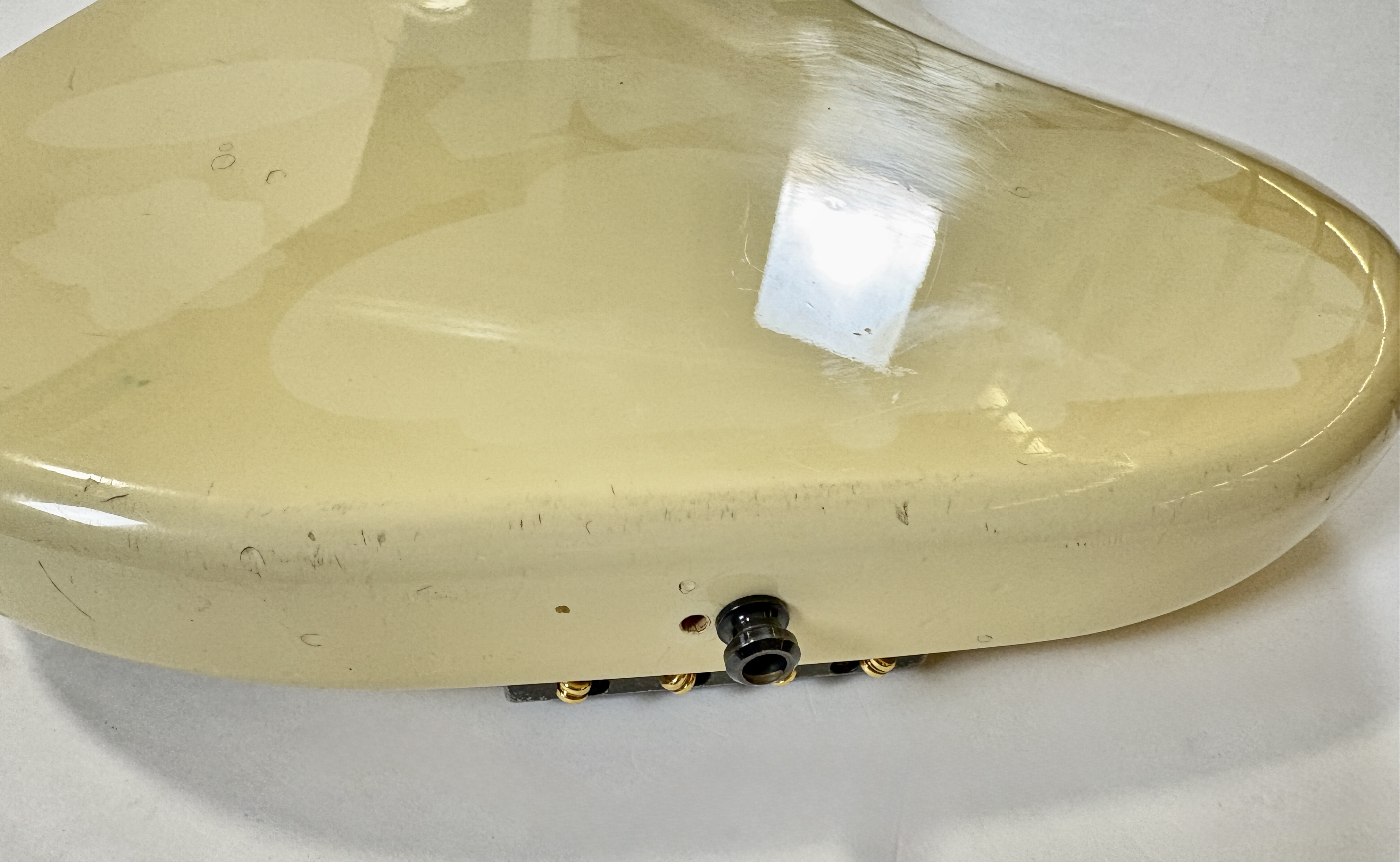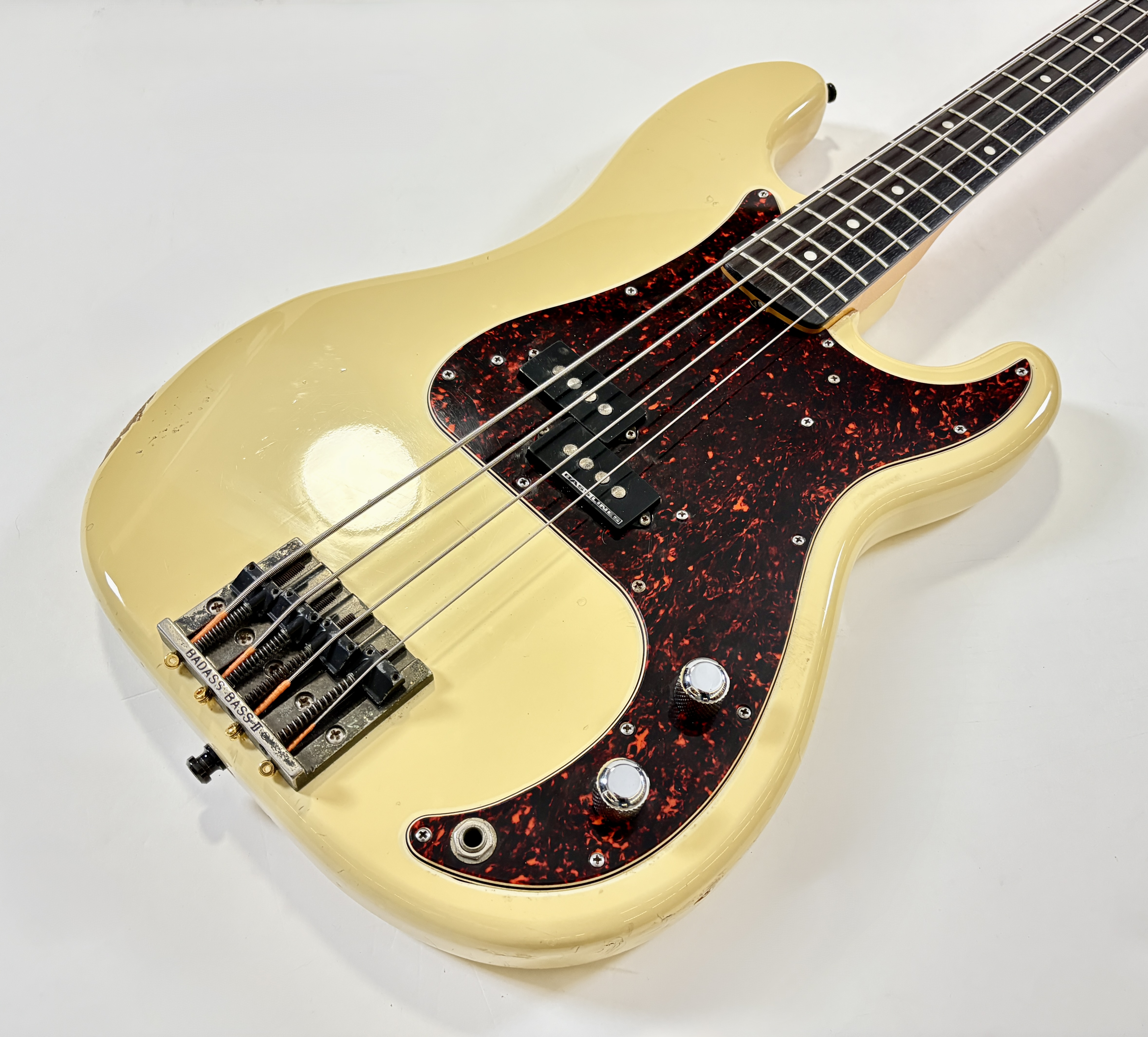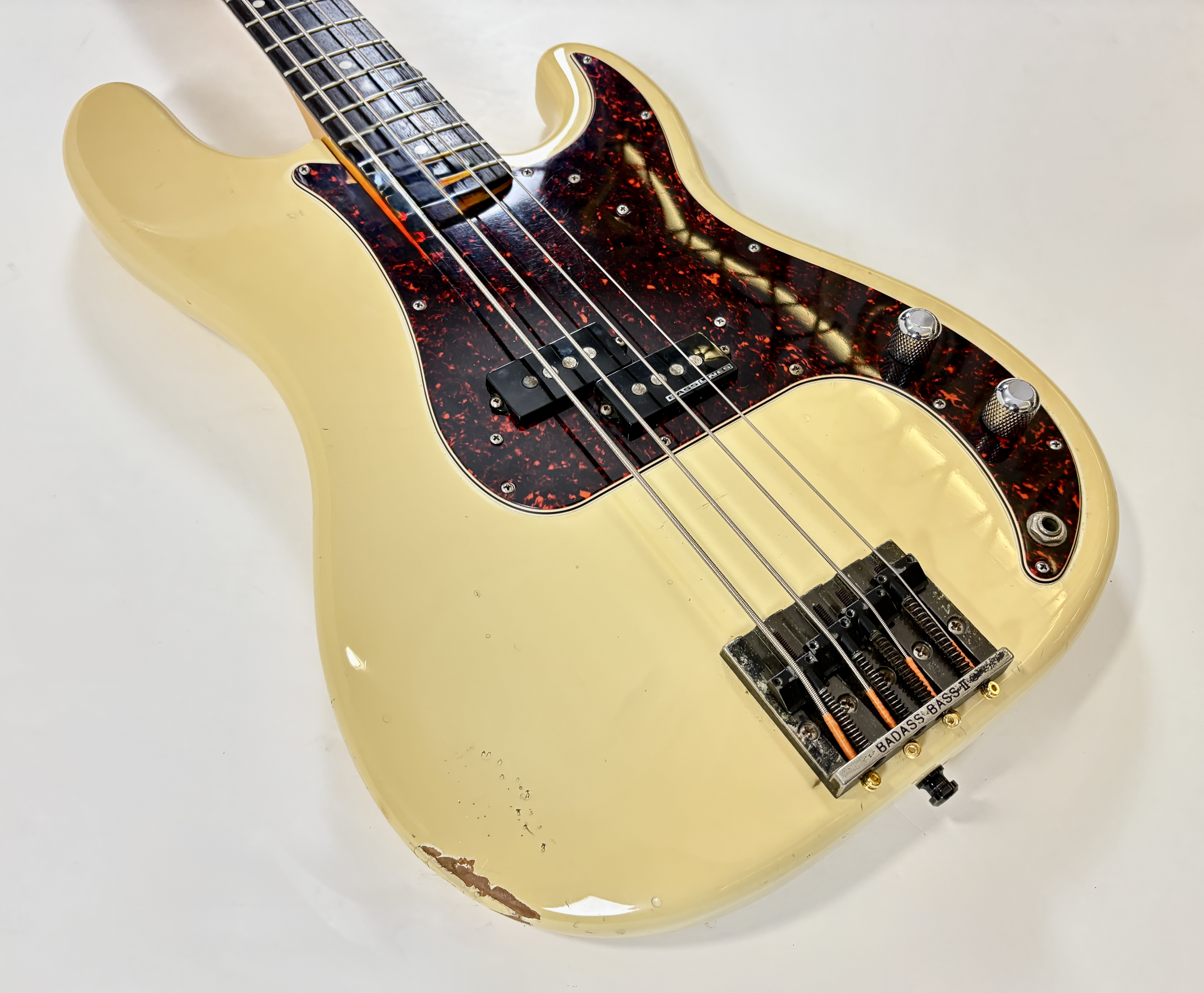 Pionnière parmi les basses, la Pbass sort en 1951 mais ne prend sa forme « définitive » qu’en 1957. La construction est ici classique avec un manche en érable, une touche en palissandre au radius de 7,25 pouces, le tout avec un corps de teinte Olympic White. Les micros a été remplacé par un Seymour Duncan Basslines Quarter Pound, le reste de l'électronique a suivi. On retrouve la qualité exemplaire de lutherie, d'assemblage et de finition propre aux productions nippones.Location, achat, vente, reprise, dépôt-vente.