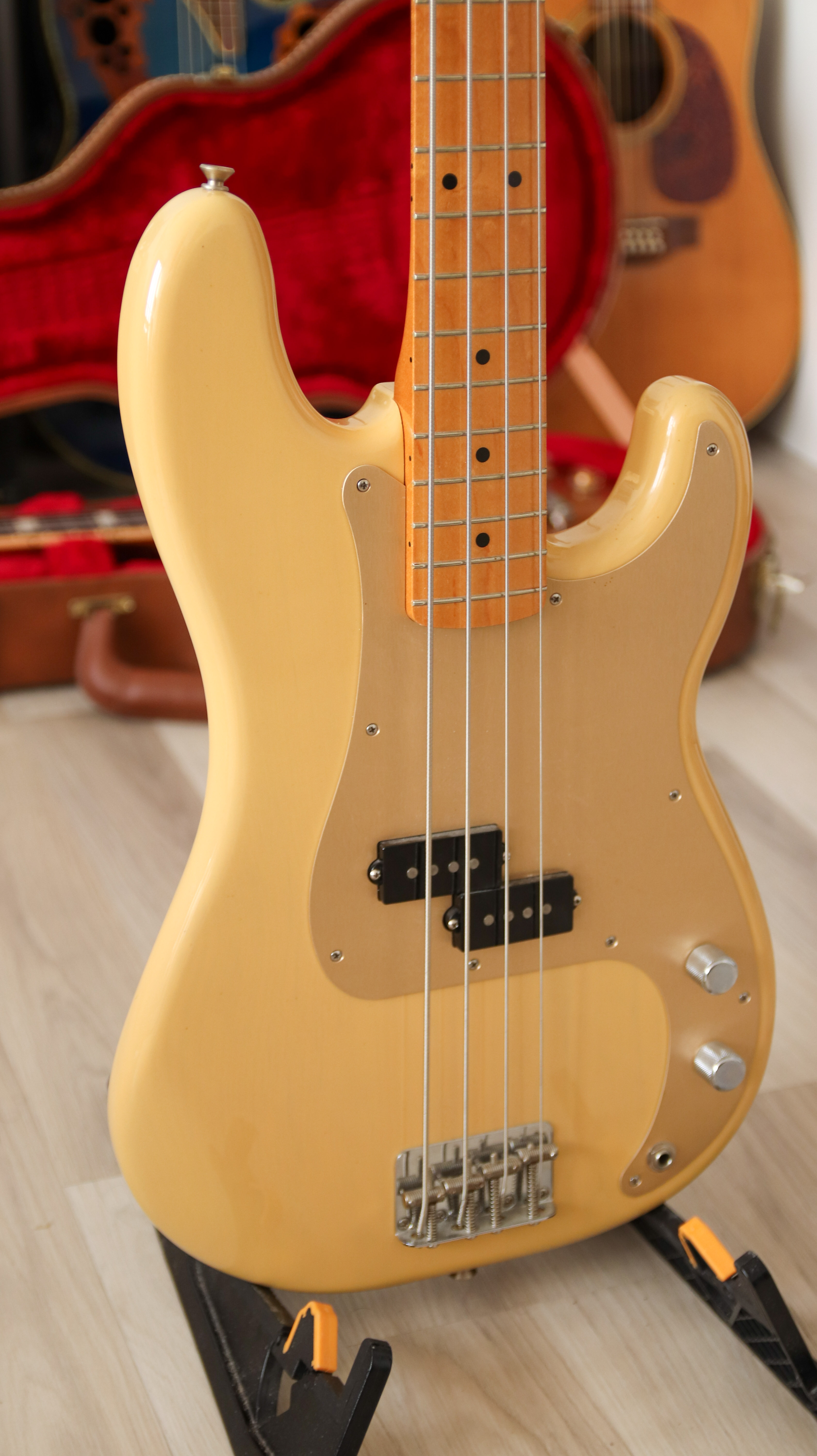 Bonjour je mets en vente cette magnifique Fender Precision Bass Vintera 50’s de Juin 2020 en finition Vintage BlondeL’ état est irréprochable et elle est parfaitement réglée avec des cordes neuve Ernie Ball 45-105