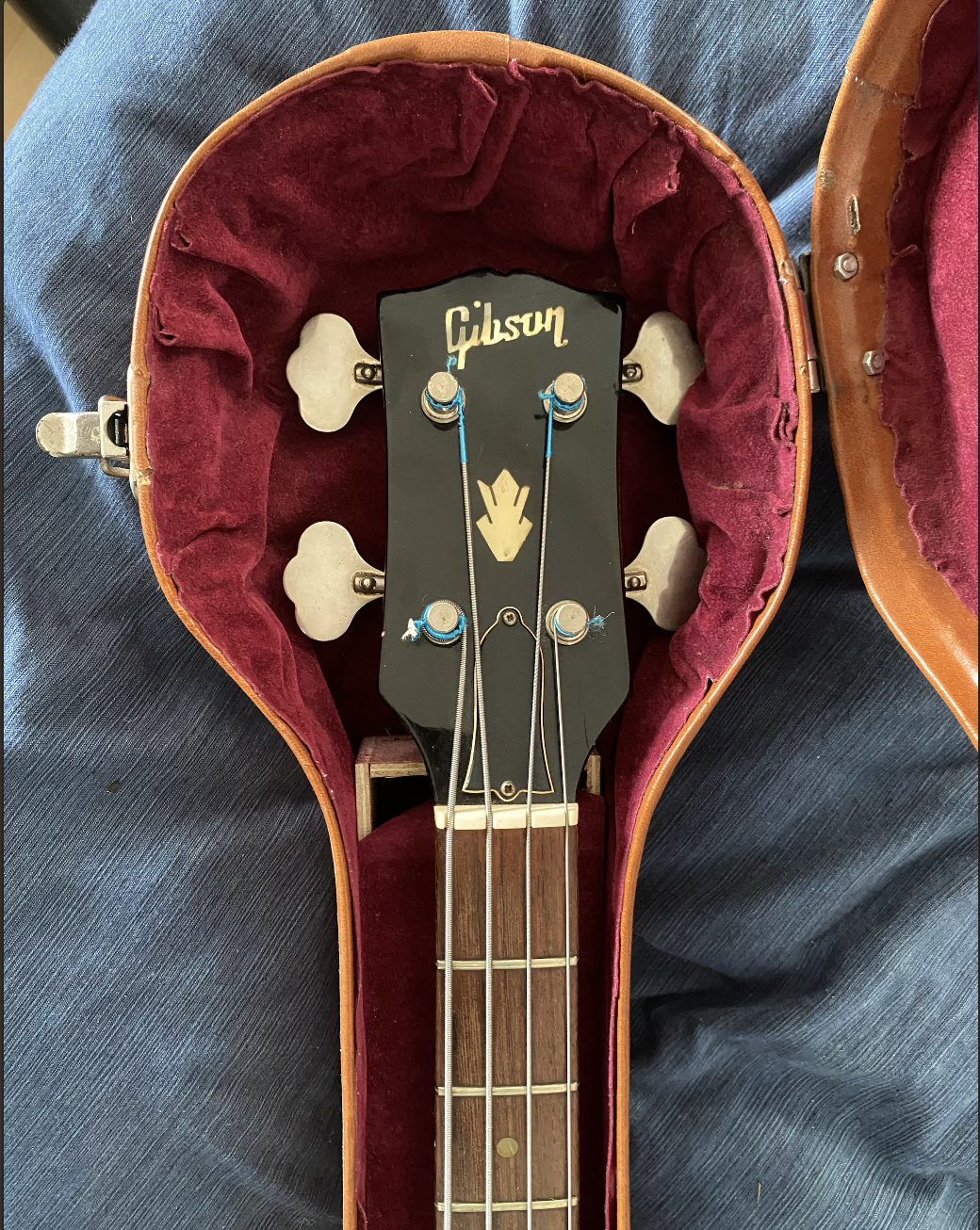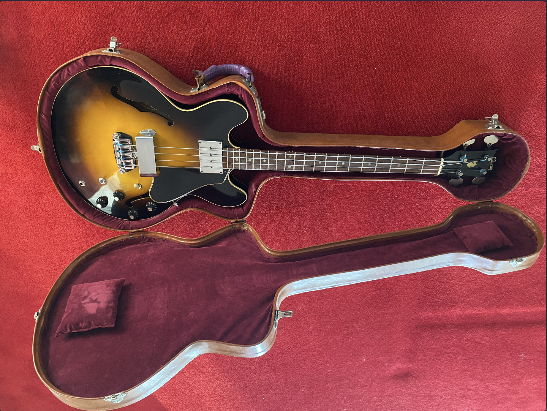 En vente Gibson EB-2D de 1967 état impeccable + étui rigide en cuire.Corps semi-hollow type ES