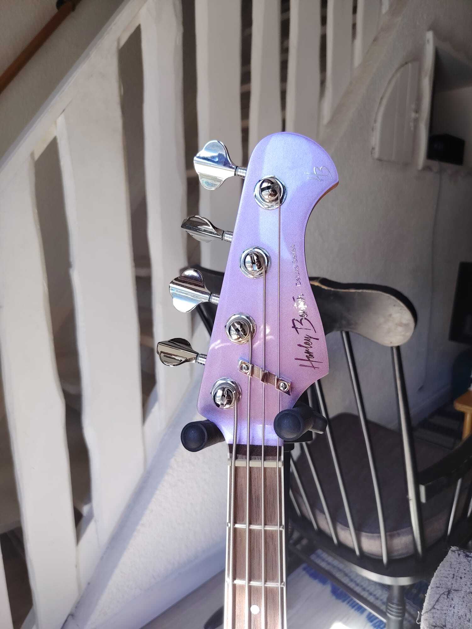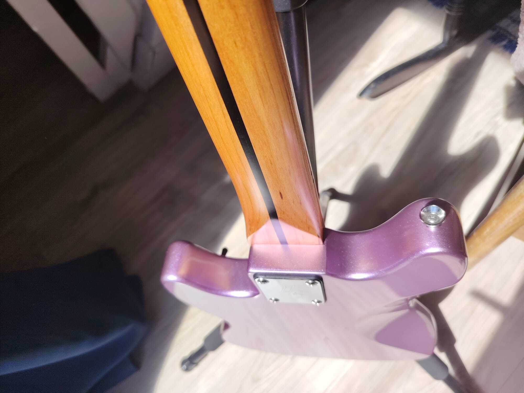 Short scale, avec une finition Burgundy Mist (violet clair).