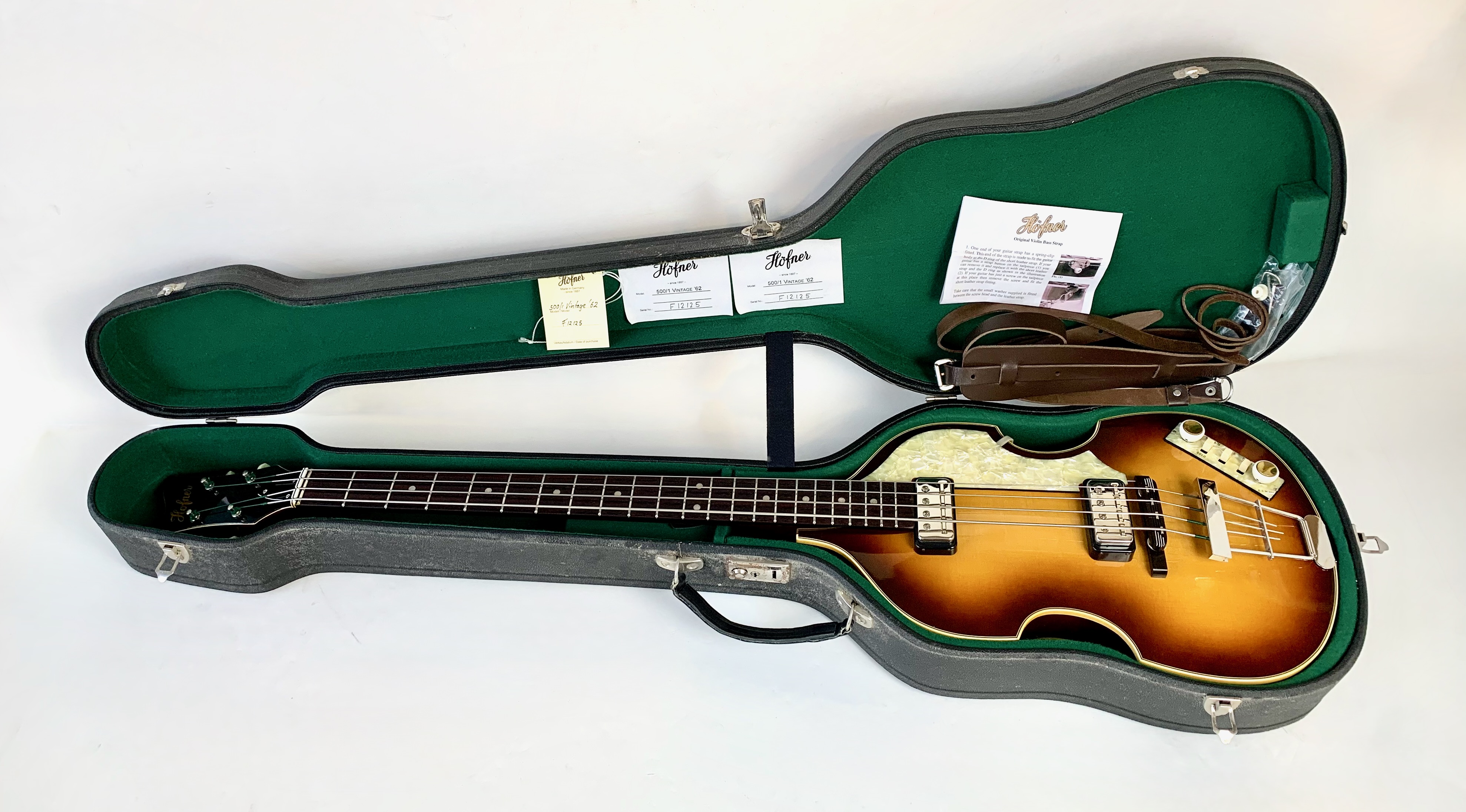 La Violin Bass est grâce aux Beatles et Paul McCartney l’instrument le plus mythique de la marque. Cette réédition faite en Allemagne comme à l’époque est en très bon état, étant une V62, elle reproduit le millésime de… 1962. Vendue avec ses papiers, sa sangle dans son étui d’origine.Location, achat, vente, reprise, dépôt-vente.