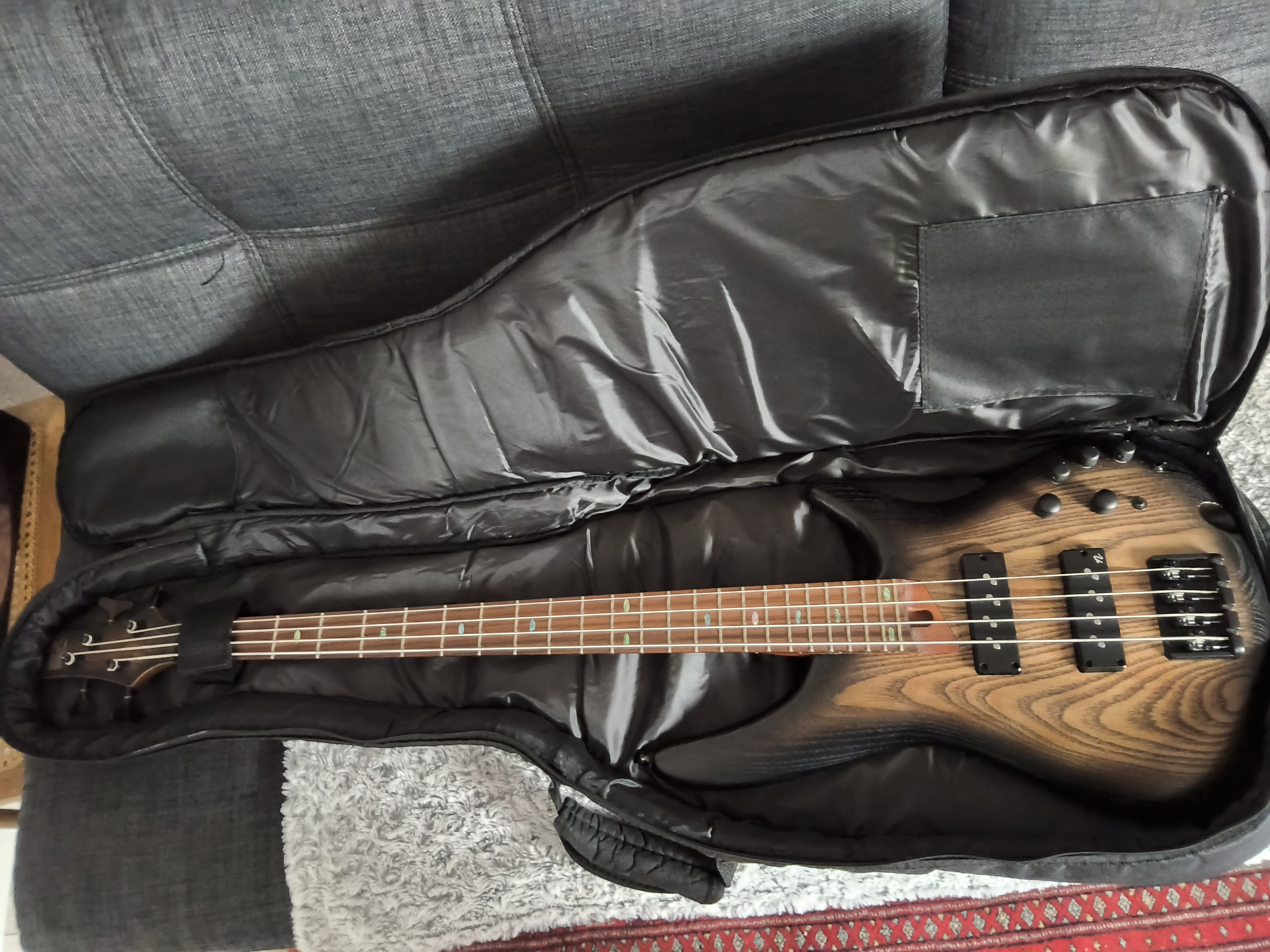 Basse Ibanez SR600E Antique Brown Stained Burst en parfait état et housse souple Rockbag.