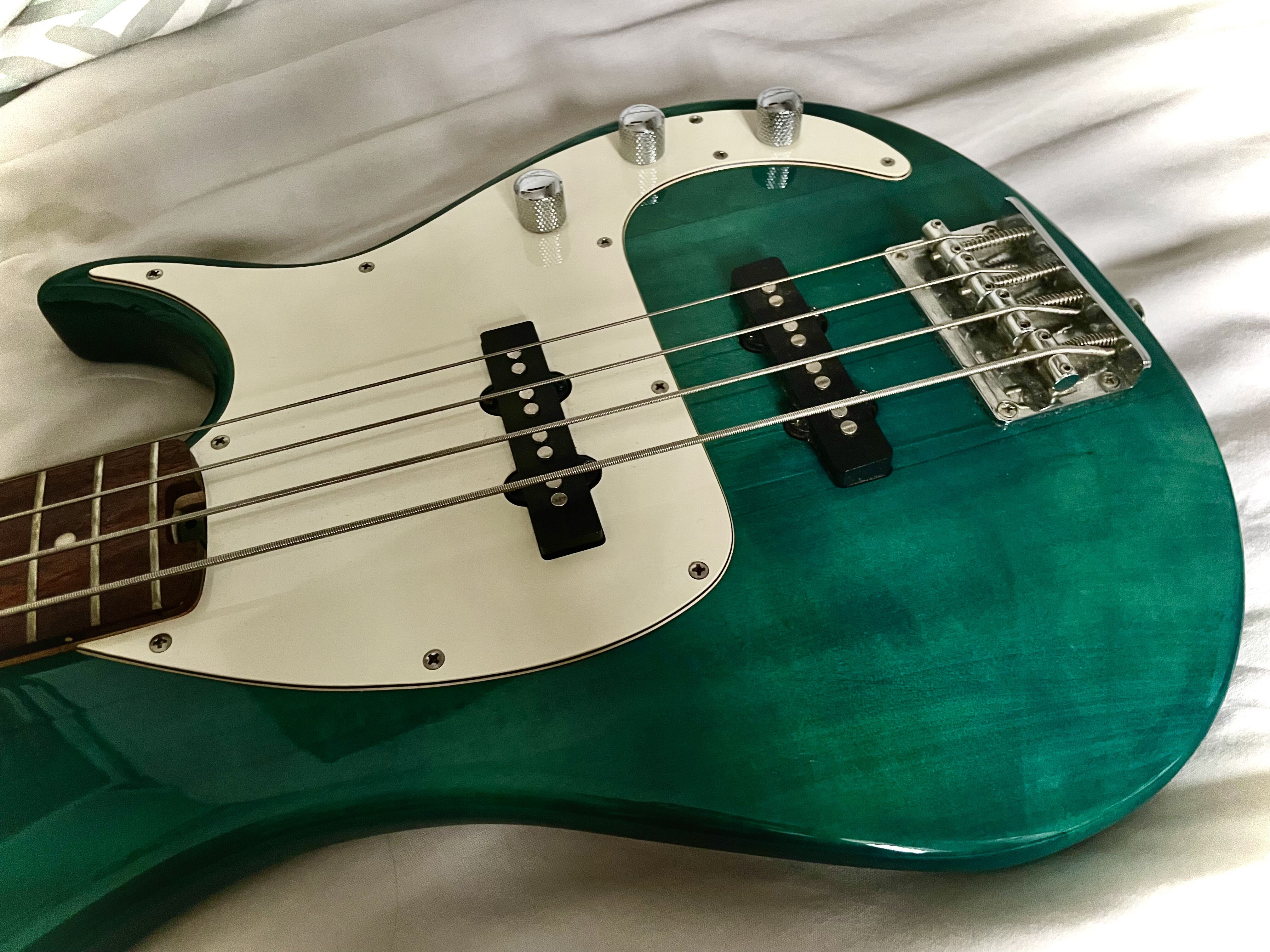 Je vends cette basse pour financer l'achat d'une nouvelle. Elle est d'un magnifique vert foncé et elle sonne aussi bien entre Jazz et Precision. Elle n'a servi qu'à la maison, à part quelques rayures mineures, elle est en très bon état. Fournie avec une housse.Remise en main propre uniquement dans Paris 18e de préférence, mais possible dans les autres arrondissements aussi.