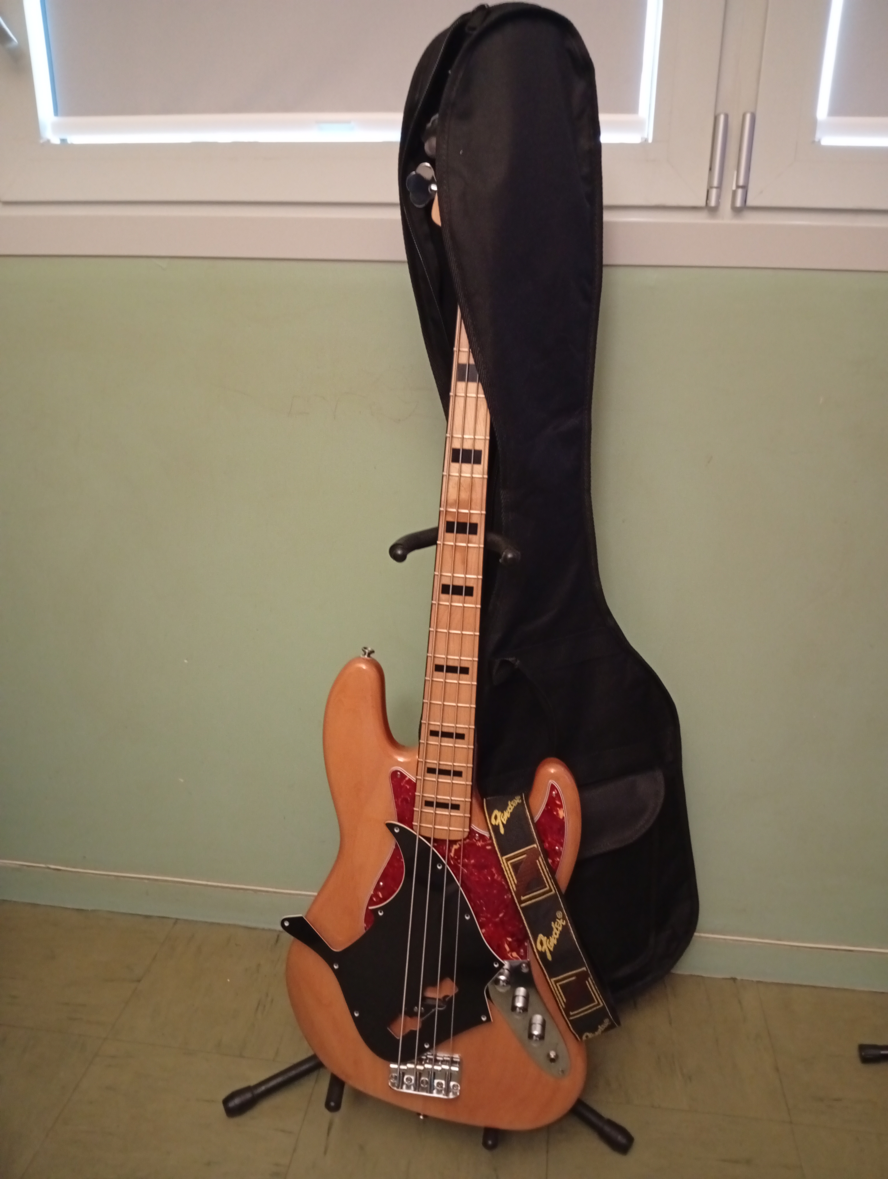 Bonjour,je propose à la vente cette Squier Vintage Modified Jazz Bass 70's, un modèle réputé pour sa qualité de fabrication et son électronique supérieure aux standards actuels de la marque.L'instrument est en très bon état général. À noter uniquement un petit éclat de vernis (poc) sur la tranche, près du chanfrein, purement cosmétique et invisible de face (voir photo détaillée). Le manche est impeccable, les frettes sont en bon état et l'électronique est parfaitement silencieuse.