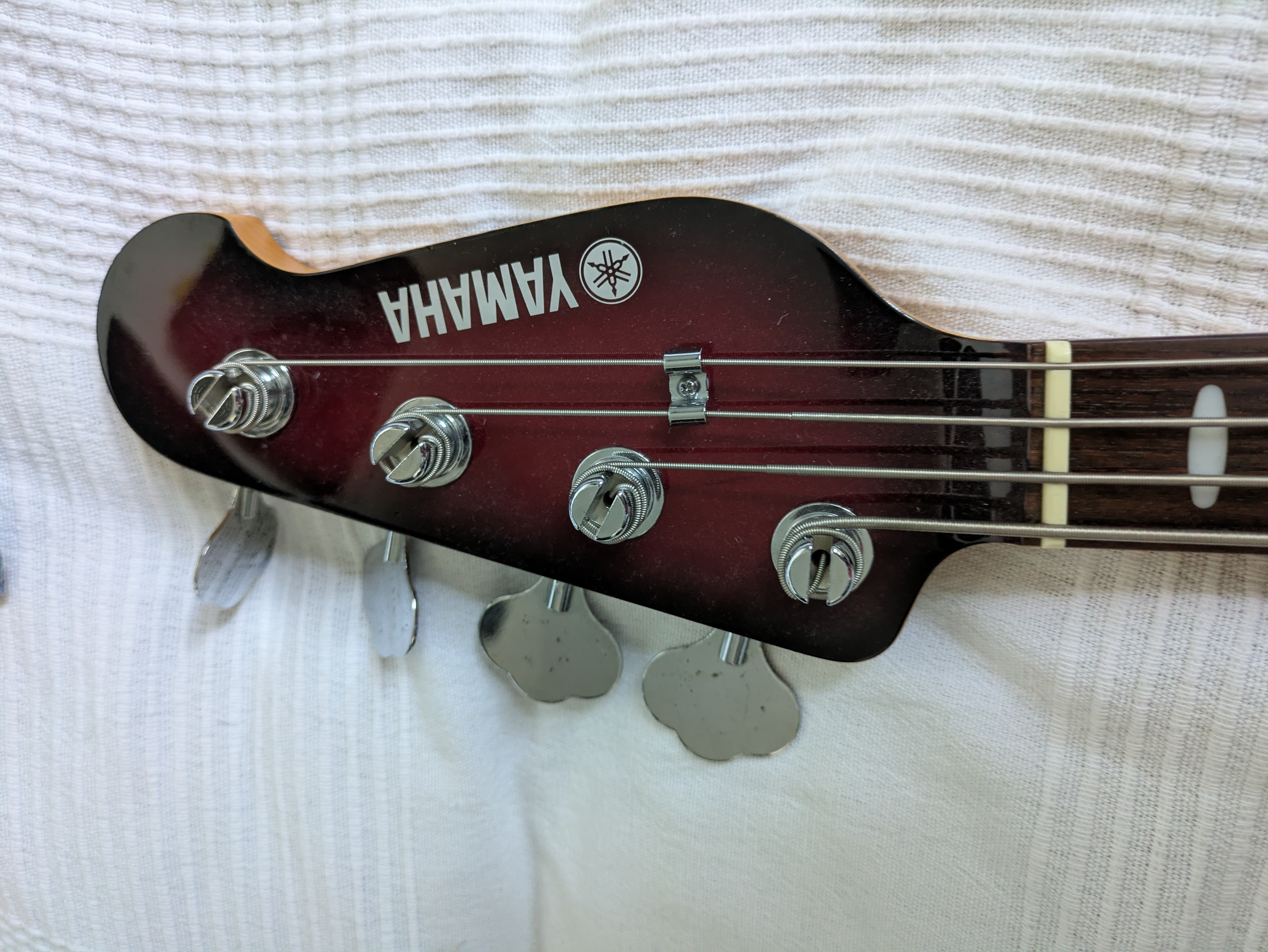 Sur cette yamaha, c'est d'abord le look qui m'a plu, la mienne est rouge translucide et brun, on dirait un gros bombon et elle faisait "tache" au milieu des jazz bass et des précision, j'ai demandé à l'essayer.