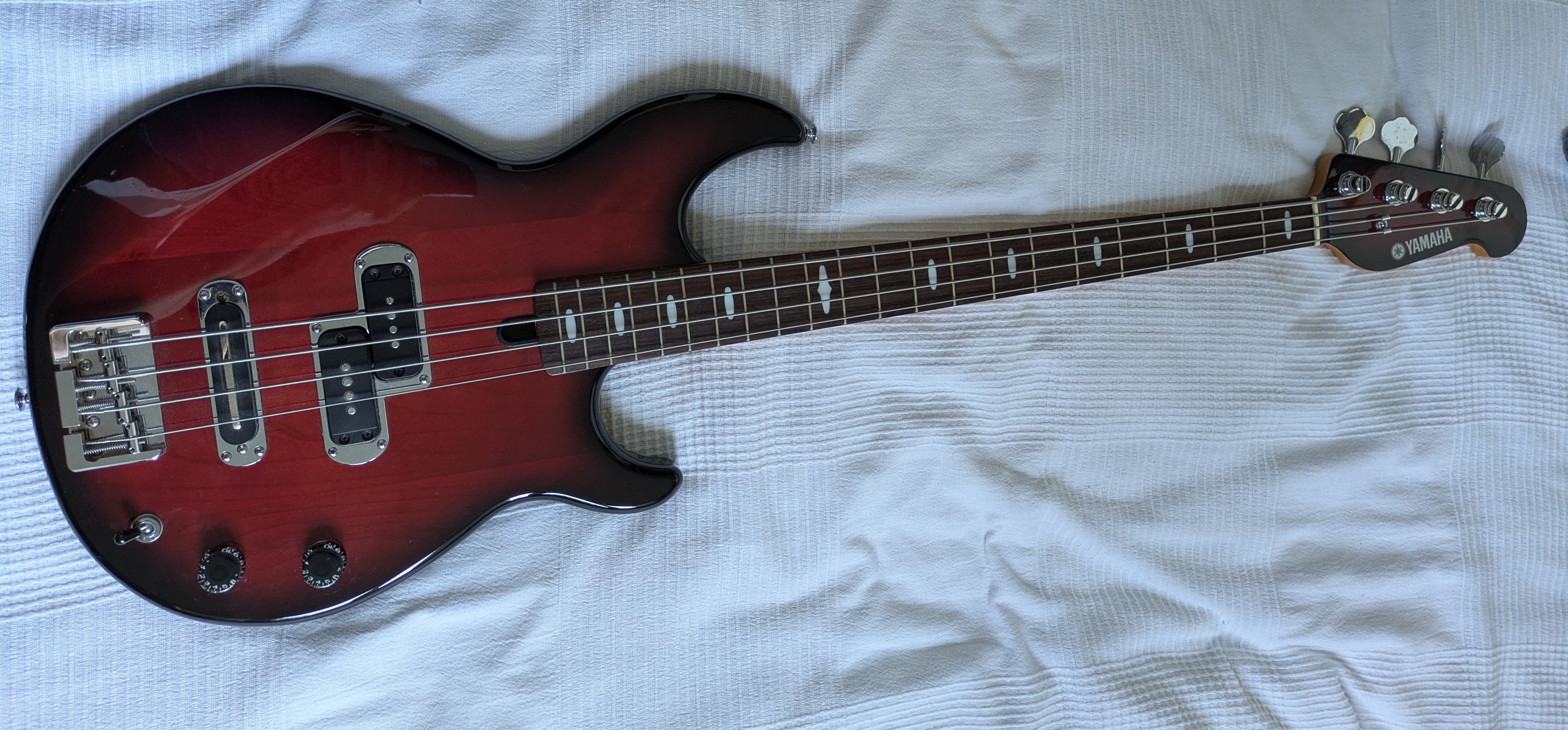 Basse yamaha bb414 : chevalet remplacé par un bad ass pour plus de précision, de sustain et de confort. Condensateur changé pour ne pas perdre de grave. Basse modifié et réglé par un luthier. Son original , couleur rare. Made in taiwan , il y a 20 ans environ .Remise en main propre.
