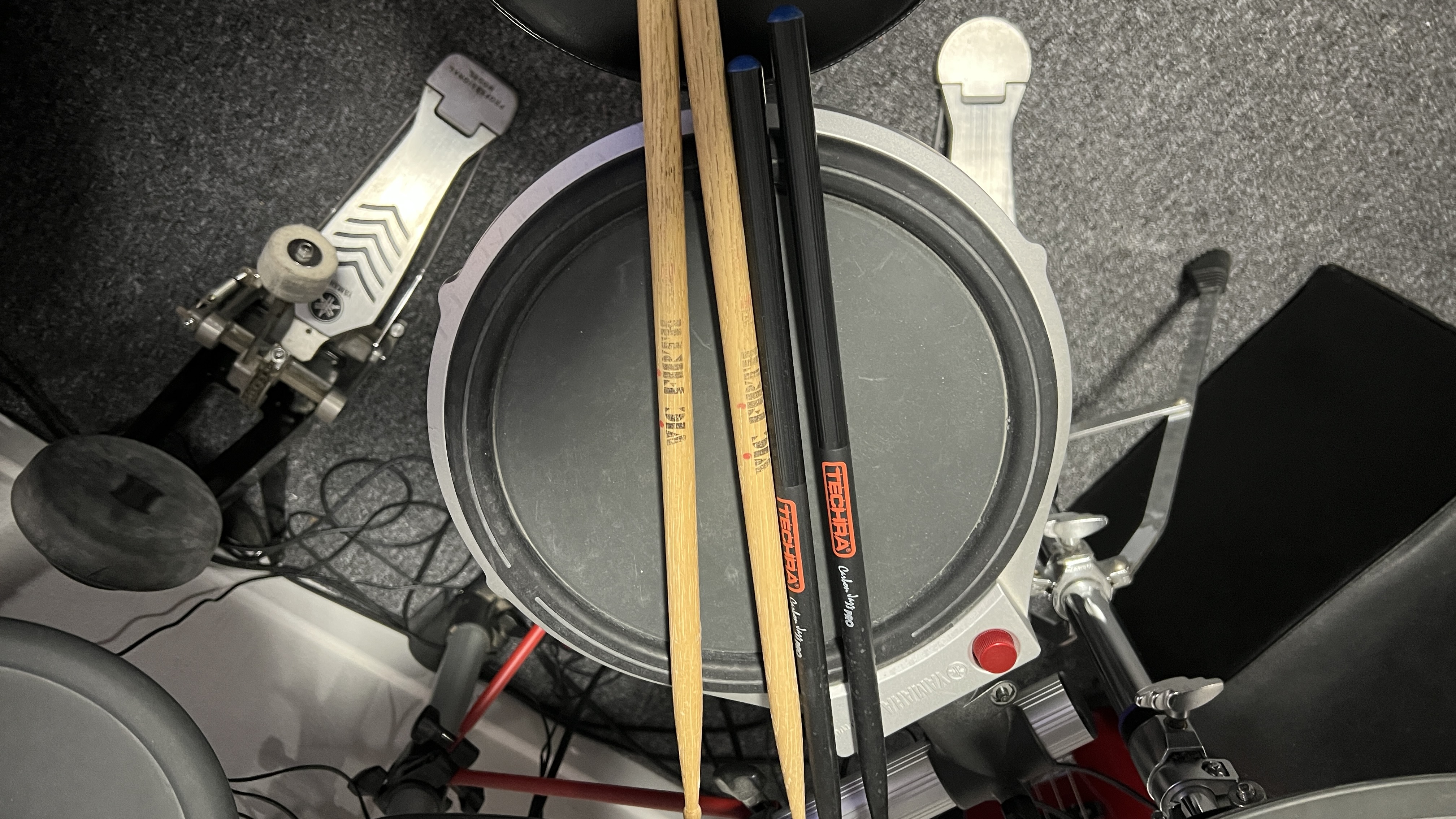 + 2 paires de baguettes (Vic Firth bois et Techra)