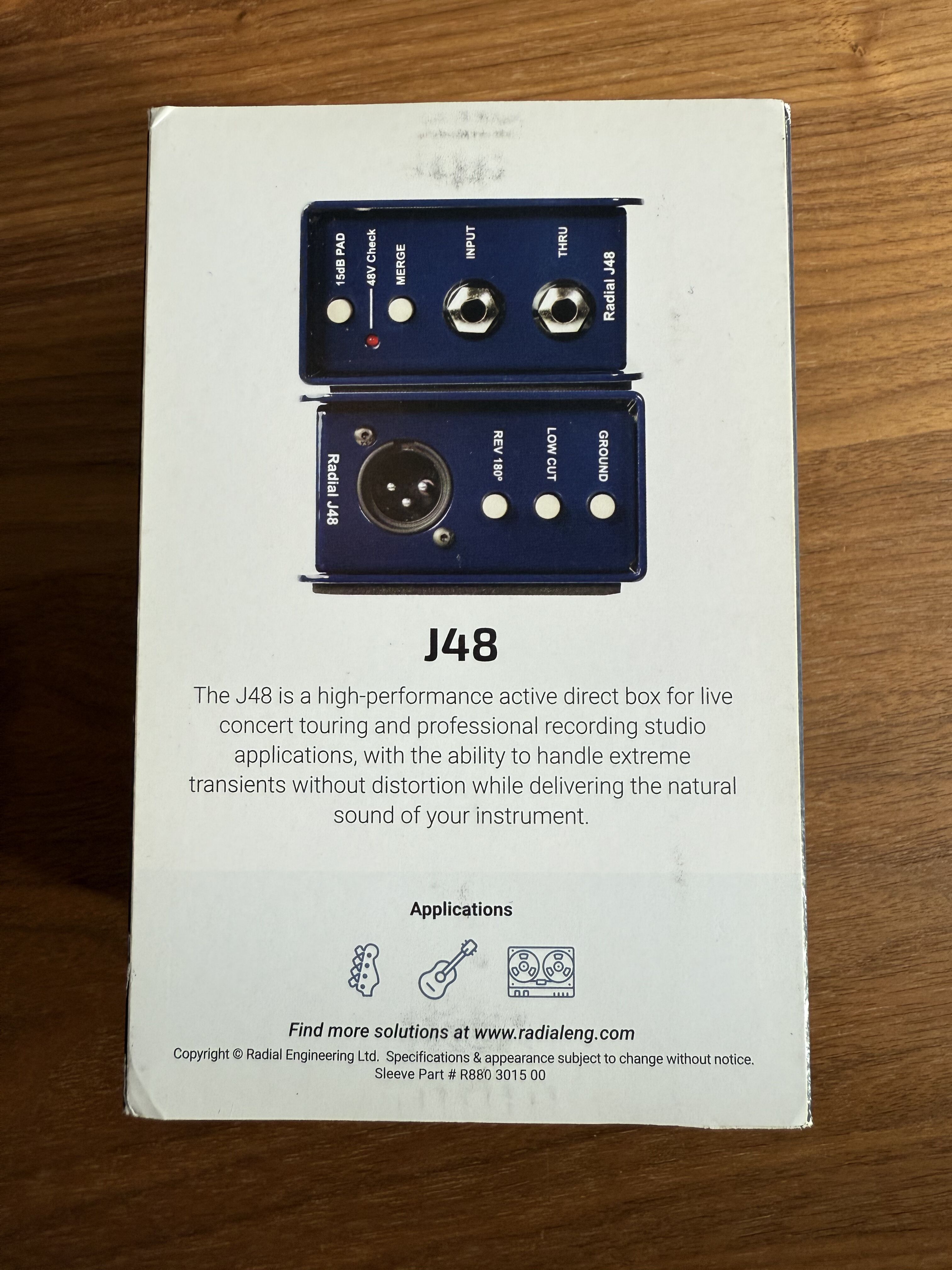Vends boîte de direct DI Radial J48 mono active direct box 48v