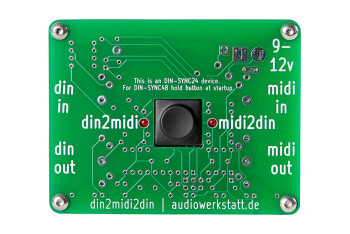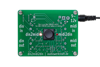 Le din2midi2din est équipé de entrées et sorties MIDI et DIN-Sync-Out, et un signal d’horloge est envoyé en même temps aux deux sorties.