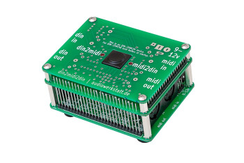 Le din2midi2din est alimentée en 9–12V AC ou DC, mais l’alimentation n’est pas incluse.