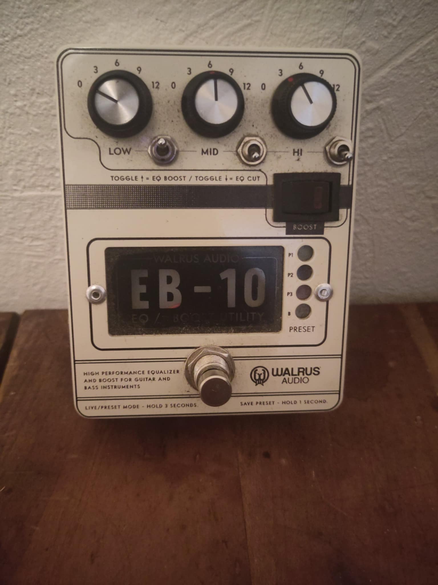 Je vends cette Walrus EB 10, pédale très polyvalente combinant égaliseur 3 bandes, préamp et boost, mémoires de présets.