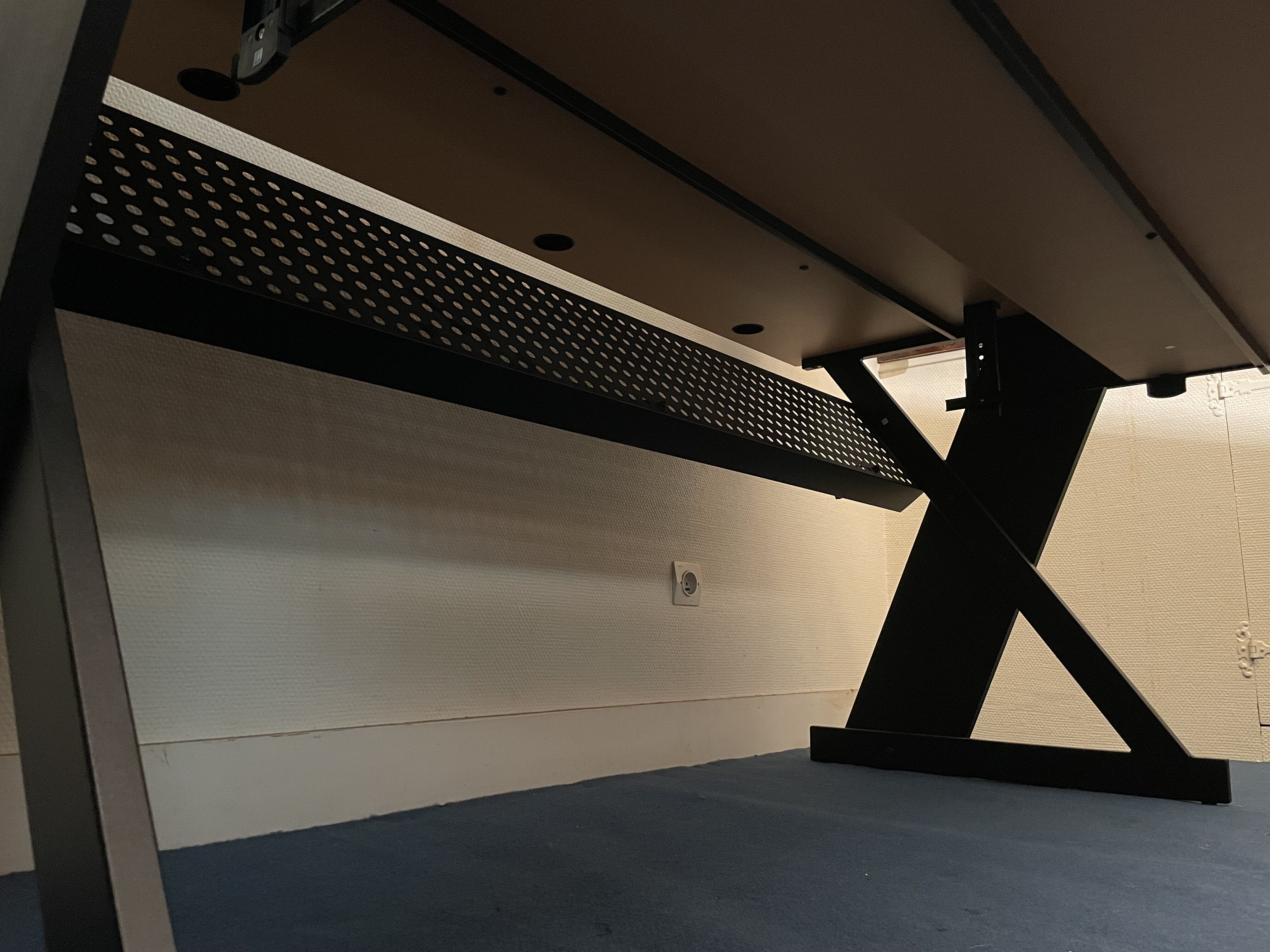 Une tablette de clavier, des plaques rotatives pour poser les enceintes et 2 support pour casques.