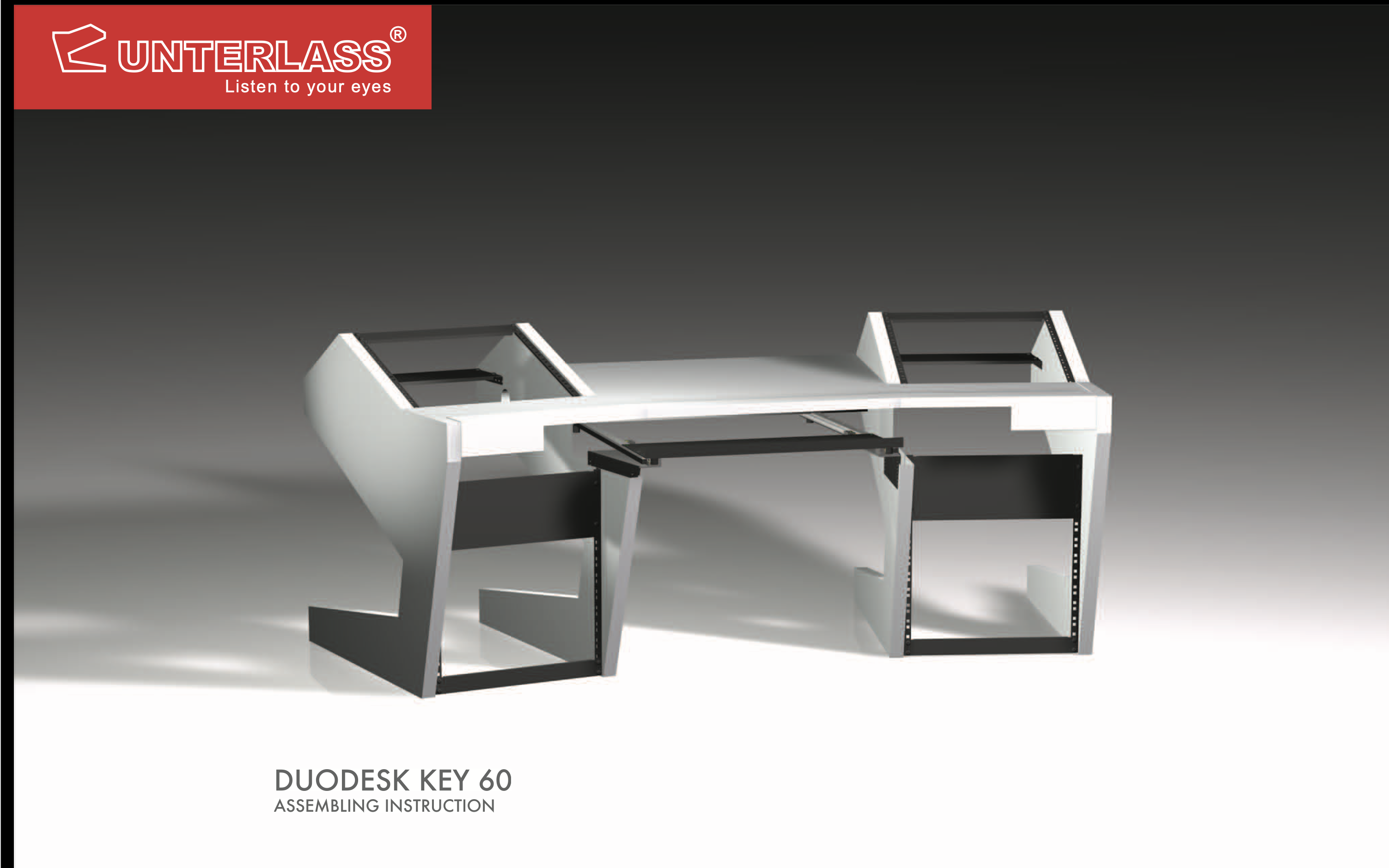 DUODESK KEY 60 flexi+35 –Meuble AUDIO studio professionnel (Blanc / pieds noirs)Le DUODESK KEY 60 flexi+35 de Unterlass Studio Furniture est un bureau haut de gamme conçu pour les studios d’enregistrement, de production musicale et de mastering. Il combine ergonomie, robustesse et optimisation de l’espace afin d’offrir un environnement de travail idéal pour les professionnels de l’audio.