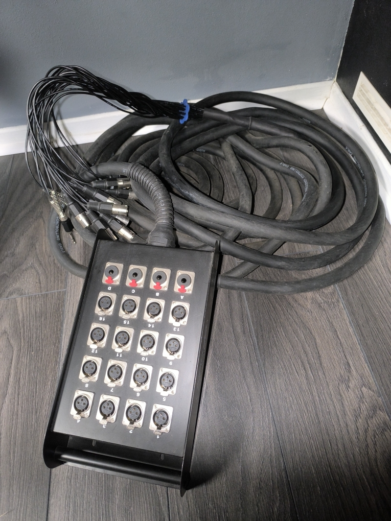 A vendre: boîtier de scène professionnel multicœur Stagg SBL-15/16X4XH, doté de 16 entrées XLR, 4 sorties XLR et d'un câble multicœur avec 16 connecteurs XLR mâles et 4 femelles, est un outil indispensable pour organiser vos propres soirées musicales DJ/ sono groupe/ studio.