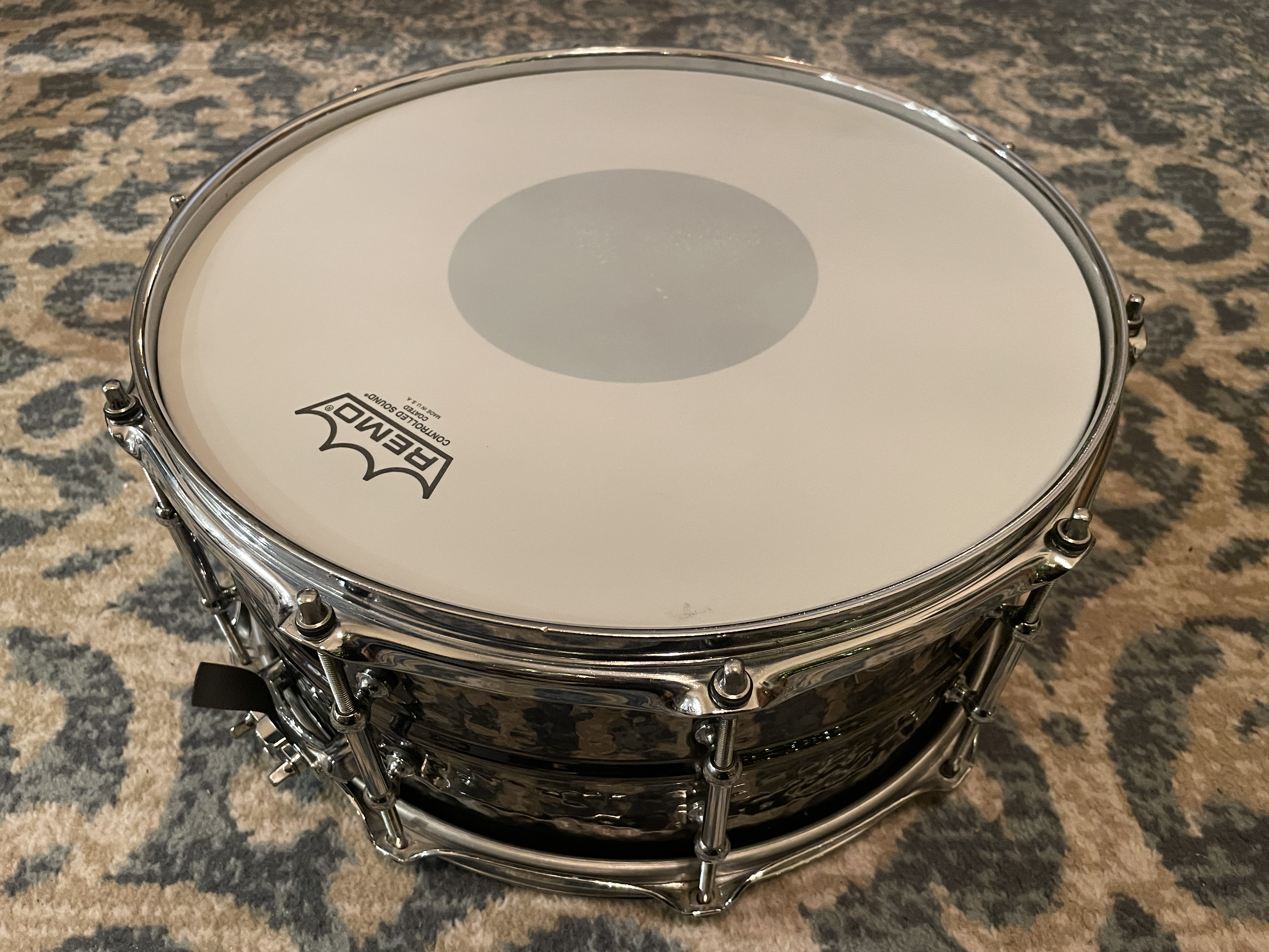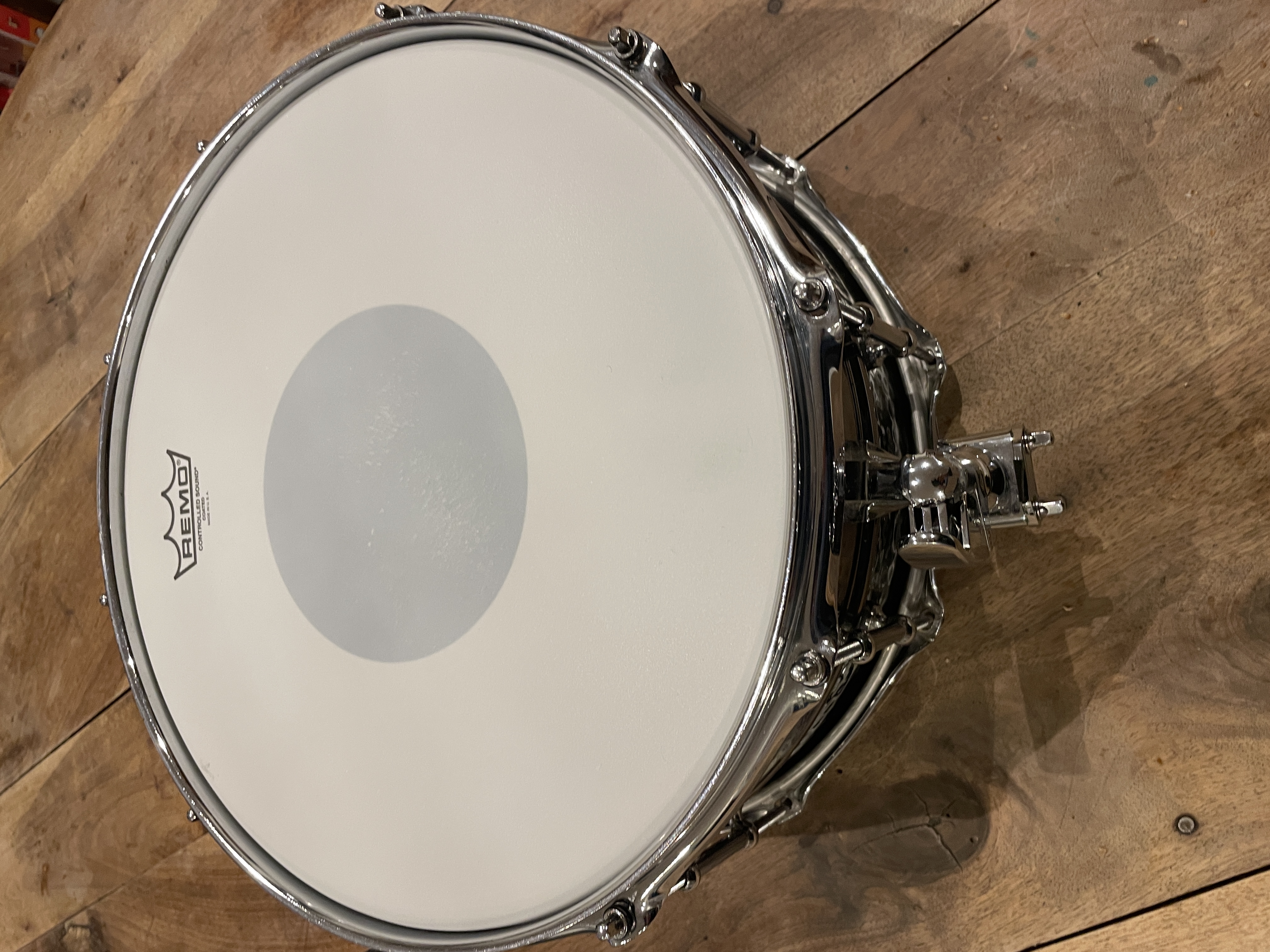 Les peaux ont été changées (Rémo Ambassador CS en frappe et Emperor en résonnance / Peau de résonnance d'origine disponible si besoin), de même que le timbre (Pure Sound 20 brins) et le déclencheur.
